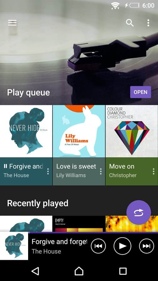 Si eres un gran fanático del software de Sony pero por alguna razón usas un smartphone de otro fabricante, puedes probar el Walkman de sonivskuyu en tu dispositivo. No tiene problemas con la reproducción por carpetas, artistas, listas de reproducción, etc.; además, ofrece lo que se llama reproducción de video inteligente: las pistas seleccionadas, las recientemente añadidas y las populares. Además del reproductor en sí, el programa incluye una búsqueda, su propio ecualizador y soporte para terceros. Hay un conjunto de configuraciones ClearAudio+ para auriculares o altavoces externos, hay edición de etiquetas (manualmente y automáticamente) y carátulas. Si el smartphone funciona en conjunto con el reloj en Android Wear, se puede controlar el reproductor y el último.