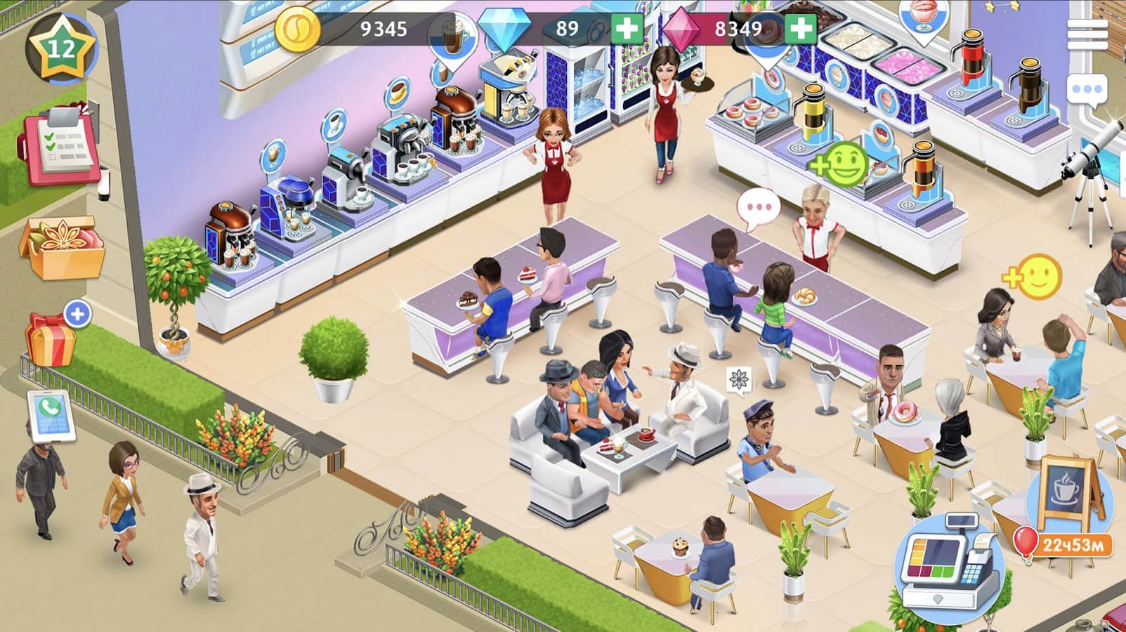 Mi cafetería: recetas e historias - el restaurante de tus sueños / Mi Café: Recetas y Historias - Juego de Cocina Mundial – un fascinante arcade en Android donde operarás un pequeño café. En este juego, tu tarea es cocinar delicioso café y postres para tus clientes. También tendrás que comunicarte con tus clientes y aprender nuevos hechos y secretos de la ciudad. Mantén una conversación amistosa con los visitantes que podrán compartir contigo nuevas recetas de cupcakes y pasteles, y también contar nuevas historias y chismes. Recuerda todos los deseos de tus clientes y enriquece tu menú con nuevos postres y café. Gana monedas y compra nuevo equipo y mobiliario para la comodidad de los huéspedes.