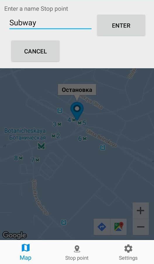 Mi Destino Nunca te perderás tu parada, solo establece el punto de parada en el mapa y una vez que estés a una distancia especificada, recibirás una notificación y vibración y el reproductor te despertará. Puedes guardar tus paradas frecuentes y no perder tiempo en el futuro haciéndolas, solo haz clic en el botón para Mi parada. En sus configuraciones puedes cambiar la distancia de las alertas, la notificación predeterminada comienza cuando te acercas a menos de 500m del punto previamente especificado en el mapa.