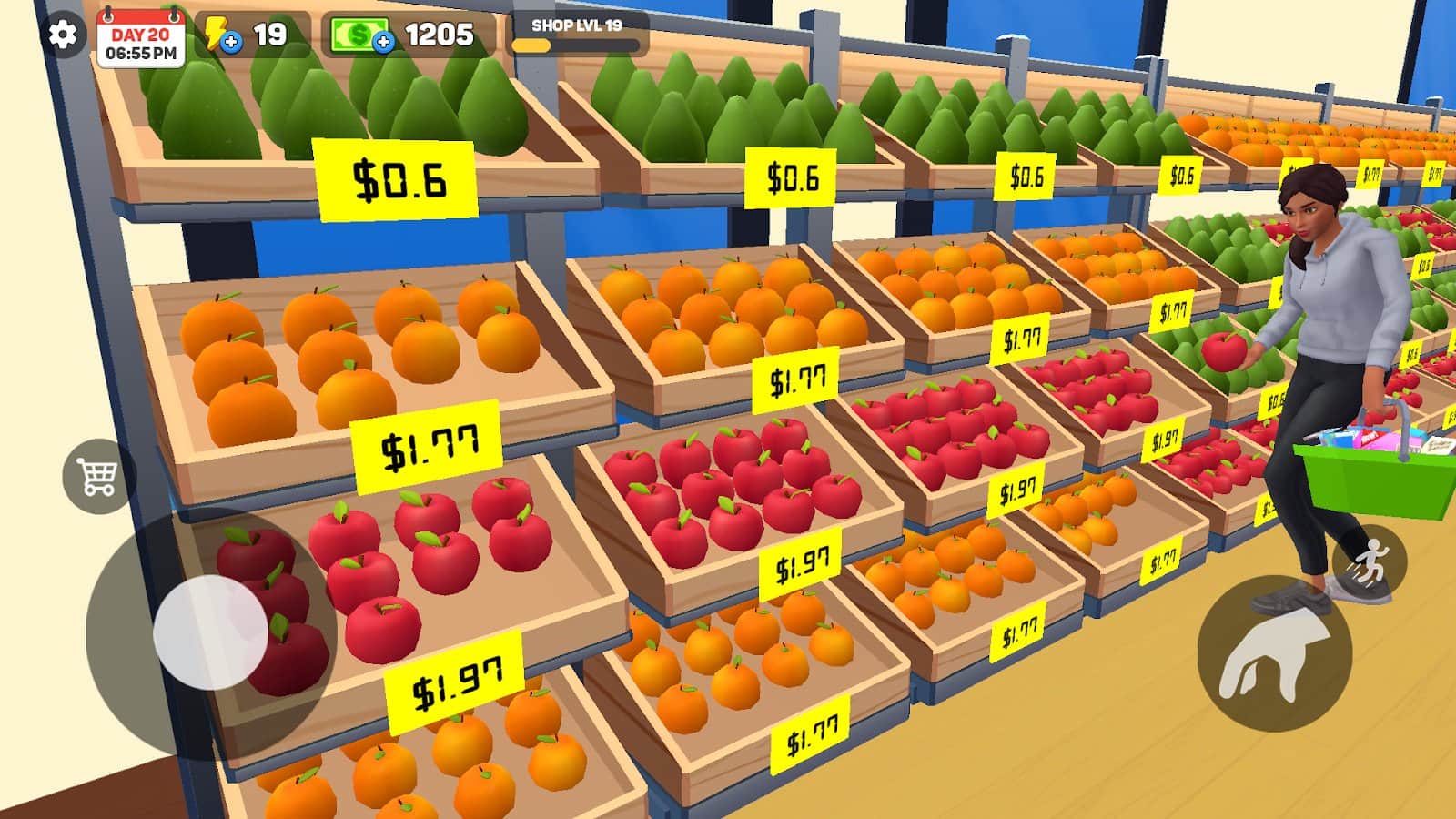Expande tu gama de productos, desbloquea nuevos departamentos y mejora tu supermercado.