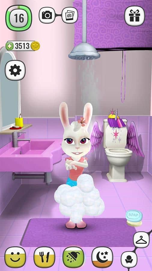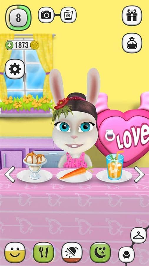 Mi Bella Hablante - Juego de mascota virtual para Windows Phone donde tu teléfono recibe un conejo hablante. Instala esta aplicación y juega con el conejo Bella en varios mini-juegos. Viste a tu conejo con una variedad de hermosos atuendos, aliméntala con deliciosas y jugosas zanahorias, y también cuídala y no olvides mantenerla limpia. Además, no olvides que Bella necesita descansar y necesita dormir. Todo lo que necesitas es hacer que crezca de un lindo conejito a un lindo conejito. Prueba diferentes ropa y maquillaje para tu dulce, y cambia la atmósfera en la casa del personaje. Alimenta a tu conejo con una zanahoria mágica, y observa lo que sucede.