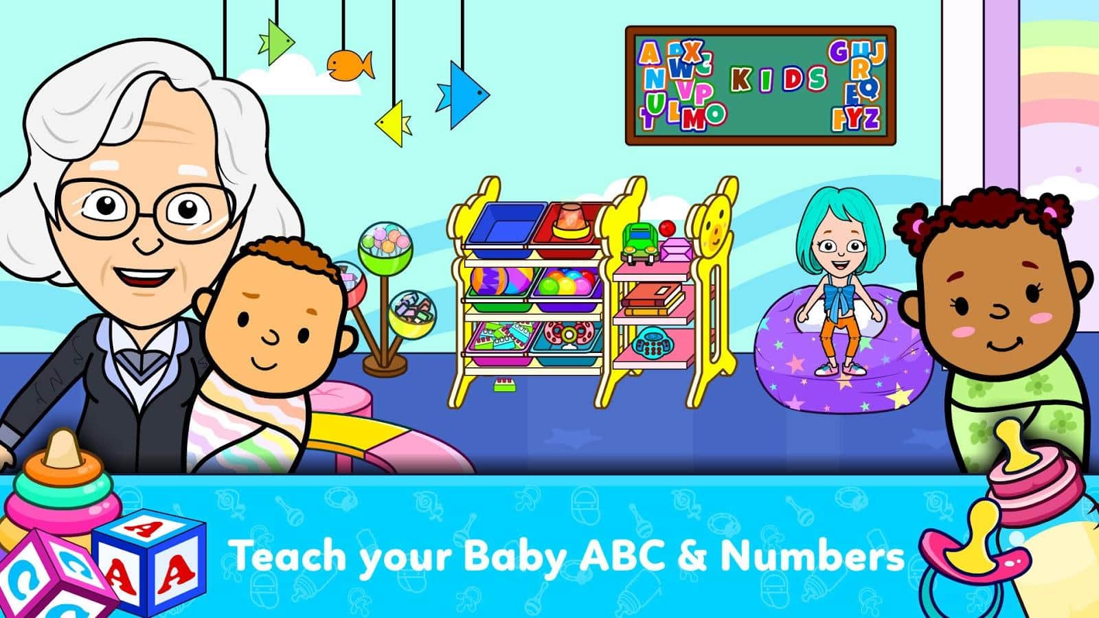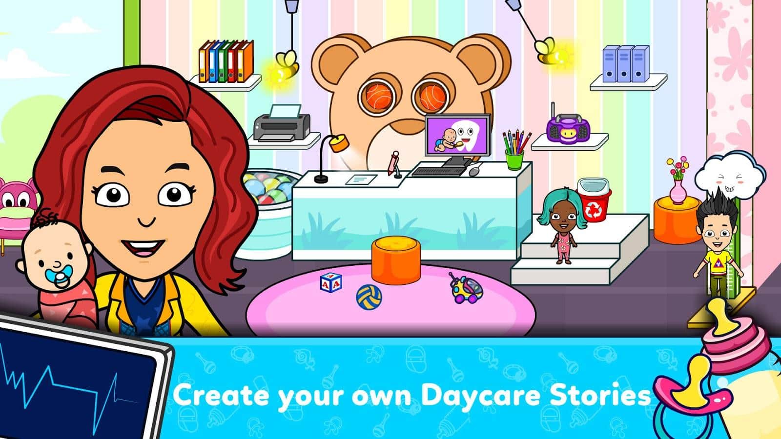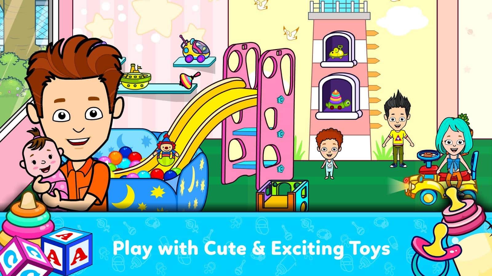 Rodéate de niños jóvenes y divertidos en el juego Tizi Town Daycare. Aunque es un juego con niños, es perfecto para cualquier edad. Siente lo que es alimentar al bebé, caminar y jugar con él, bañar, cuidar y acostarlo. Verás una gran sala de juegos con una variedad de juguetes: una piscina de pelotas, un tambor, coches de juguete, bloques, un tablero, aviones y otras cosas interesantes para los niños. Mueve cosas, añade un niño único o incluso su familia y explora tus habilidades como padre.