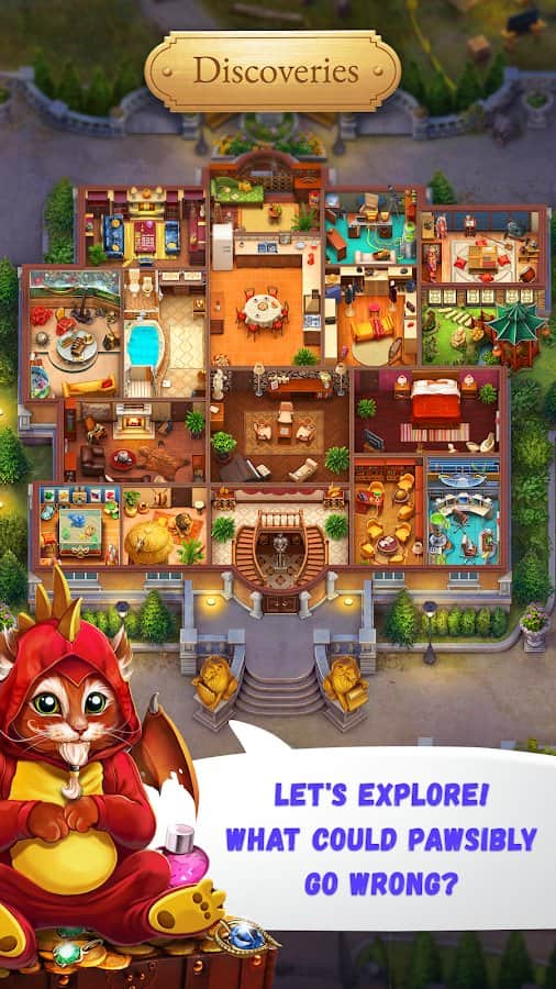 Mystery Manor: objetos ocultos - un juego de aventura cuyo protagonista es un gato ingenioso, apodado Joshua. Nuestro héroe se queda solo, ya que su amo se fue de viaje, y según la historia, la mansión que alberga a este peludo está literalmente llena de misterios, fantasmas y otros fenómenos místicos, pero el personaje rojo está a la altura de la clase de un detective y necesitas ayudarlo a desentrañar los misterios. La mecánica del juego, a su vez, combina elementos de rompecabezas y juegos de búsqueda de objetos ocultos.