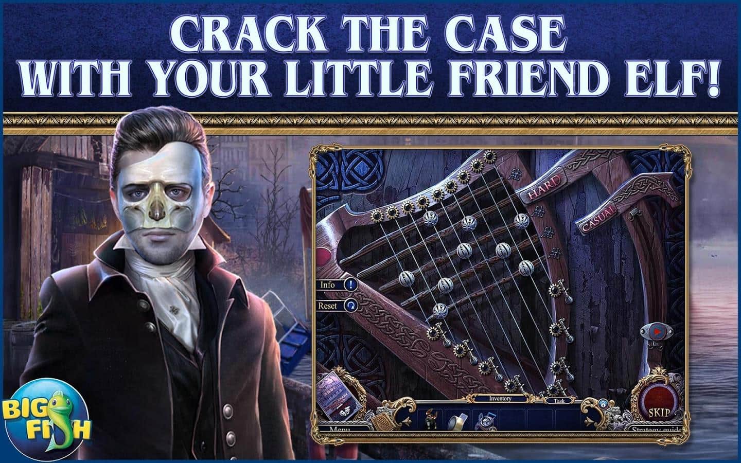 Mystery Trackers: Vengador de Paxton Creek (Misterios de cazadores. Vengador de Paxton Creek) - en este juego jugarás como un miembro de una orden secreta de cazadores. Un hombre desconocido que se hace llamar el vengador de Paxton Creek secuestró a la hija de tu capitán, además, comenzó a aterrorizar un teatro lleno de personas inocentes. Parece que este loco cree que tu orden es la culpable de todos sus problemas. ¡No puedes permitir que esto continúe, y mucho menos que alguien sea asesinado! Comienzas tu propia investigación y la caza de un justiciero de Paxton Creek!