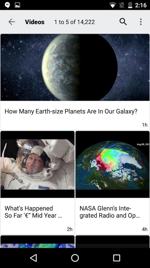 Aplicación NASA - Es una aplicación muy interesante, no es solo amateur, sino oficial. Sí, pertenece a NASA. Y ha reunido un montón de información útil sobre todos los proyectos, sobre filmaciones, sobre noticias de NASA y mucho más. Por ahora solo está disponible en inglés, y toda la narración también está en inglés. Sin embargo, si amas el espacio, eso no te detendrá. Lo más curioso es que aquí incluso puedes ver el lanzamiento de un cohete en tiempo real, pero para eso necesitas seguir las noticias y saber cuándo será el próximo lanzamiento. En general, lo que quiero decir en resumen, la aplicación es genial, si entiendes al menos inglés básico, pero incluso sin él, es evidente lo que muestran en los videos.