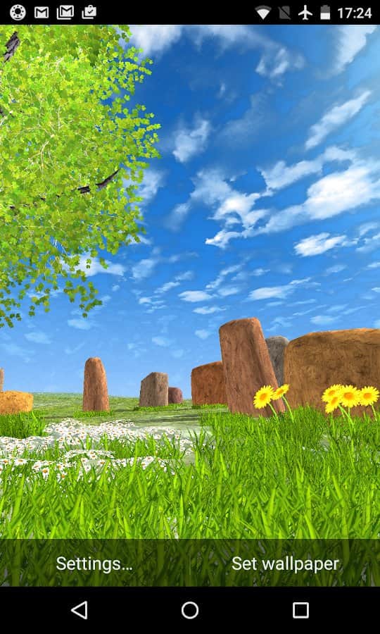 Fondo de pantalla en vivo de Árbol Naturaleza Vía Láctea – gran fondo de pantalla en vivo en Android donde verás la hermosa naturaleza en tu teléfono o tableta. Observa un lugar secreto, donde el árbol está custodiado por piedras antiguas, viajando a través del tiempo. Todas las escenas en estos fondos de pantalla son dinámicas y cambian a lo largo del día. Observa el amanecer y el atardecer y contempla en la noche la vía láctea en el cielo. El viento se genera en tiempo real, y puedes ver las ondas bajo la influencia de la hierba, las flores y las ramas de los árboles. Toca la pantalla de tu teléfono y desplázate por todas las escenas propuestas por la aplicación, sin omitir el más mínimo detalle.