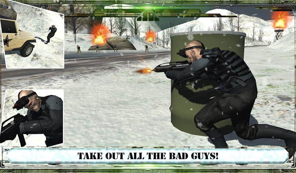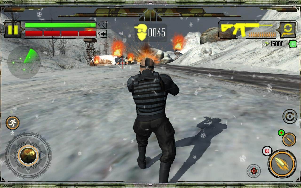 Francotirador de los Navy Seals Guerra de Invierno y conviértete en un soldado de una unidad especial y realiza las misiones asignadas y destruye a los enemigos. Muévete a través de la nieve en las altas montañas y ayuda a disparar. Defiende tu base y destruye a los terroristas con la ayuda de armas poderosas y variadas. Busca refugio y evita posiciones muy visibles para usar un solo disparo para destruir a los enemigos. Toma el control de vehículos militares y muévelos por el terreno. Obtén grandes recompensas por un trabajo bien hecho y desbloquea nuevas armas.