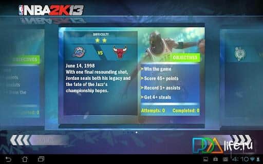 NBA 2K13 - ¡regocíjate, ahora puedes jugar al baloncesto en tu dispositivo Android! Elige tu equipo favorito de la NBA y conviértete en un entrenador virtual: ¡gestiona a tus jugadores y guía a tu equipo hacia la victoria! Control - tu elección de joystick o botones. Cambia entre jugadores y es el momento de llevar a cabo todas las acciones necesarias para vencer al oponente y llevar a tu equipo a la victoria. Prueba el modo Entrenamiento para acostumbrarte a lanzar a la canasta y moverte en el campo de juego sin interferencias. ¡Los gráficos son increíbles, podrás ver en cámara lenta los goles, tomar fotos y guardarlas en tu galería! ¿Y cuáles son los comentarios de Kevin Harlan, Clark Kellogg o! ¡Disfruta de una calidad completa y perfecta! ¡Buena suerte! ¡Crea tu equipo estelar!