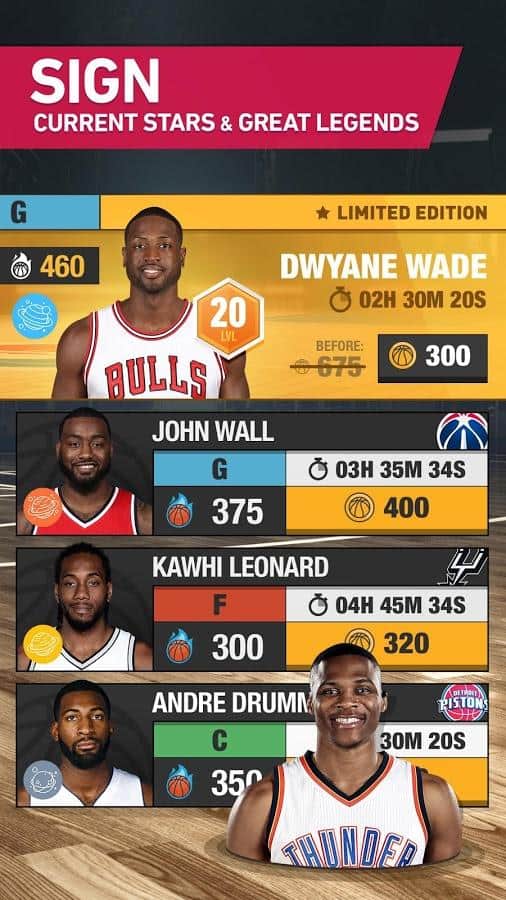 Una característica distintiva que se ha vuelto común en las aplicaciones formales son los jugadores de la vida real. Decenas de características y acciones hacen de NBA General Manager 2015 uno de los mejores gerentes para dispositivos móviles.