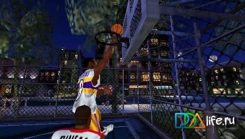 NBA street: Showdown es una cancha de baloncesto virtual en un juego de deportes para la PSP. El juego es dinámico y los oponentes son capaces de lanzar el balón tan bien como tú. Para vencer a tales profesionales, es necesario esforzarse al máximo y añadir un enorme deseo de ganar. Entre tus oponentes estarán tanto las estrellas del baloncesto como jugadores legendarios de la NBA. Y para que no te molestes con las reglas, solo ten en cuenta que es un baloncesto callejero sin reglas. ¡Lo único que importa es el balón, el aro y el oponente! El control del juego es bueno, pero tendrás que practicar para dominar el alto arte de maniobrar y el equipo mínimo. El Wi-Fi ofrece la posibilidad de jugar hasta 4 jugadores. También hay sorpresas, pero ya las conoces en el juego...