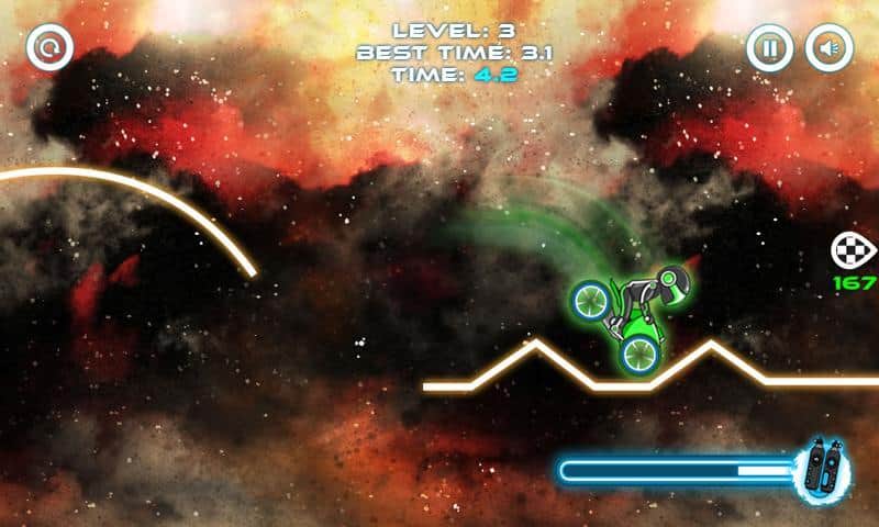 Apparatus - un juego de rompecabezas para Android donde debes montar tu bicicleta de neón en pistas de neón. Haz acrobacias locas, como giros y volteretas increíbles. Elige una de las 6 motocicletas y conduce a una velocidad vertiginosa para obtener las puntuaciones más altas por un viaje inigualable.