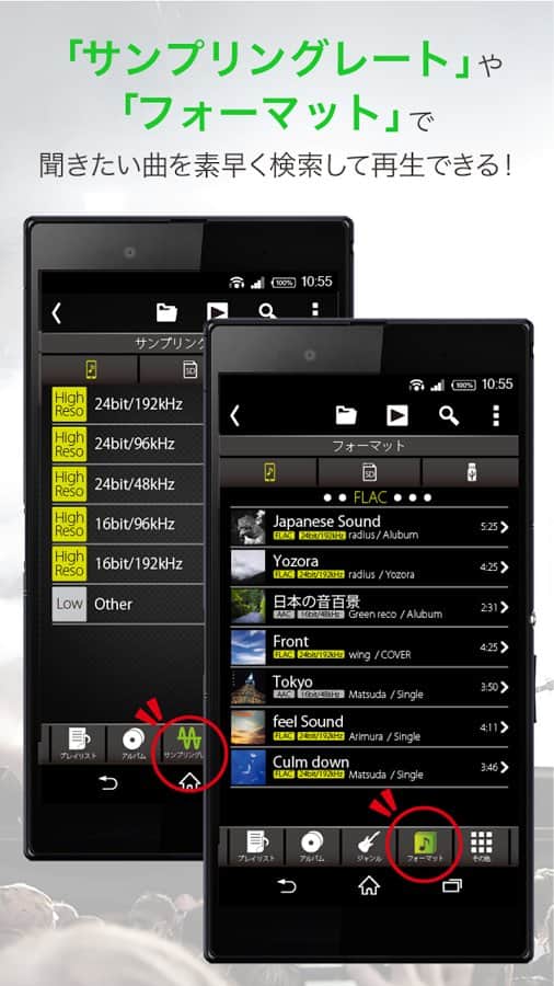 Búsqueda rápida y escucha de los archivos seleccionados Hi-Res