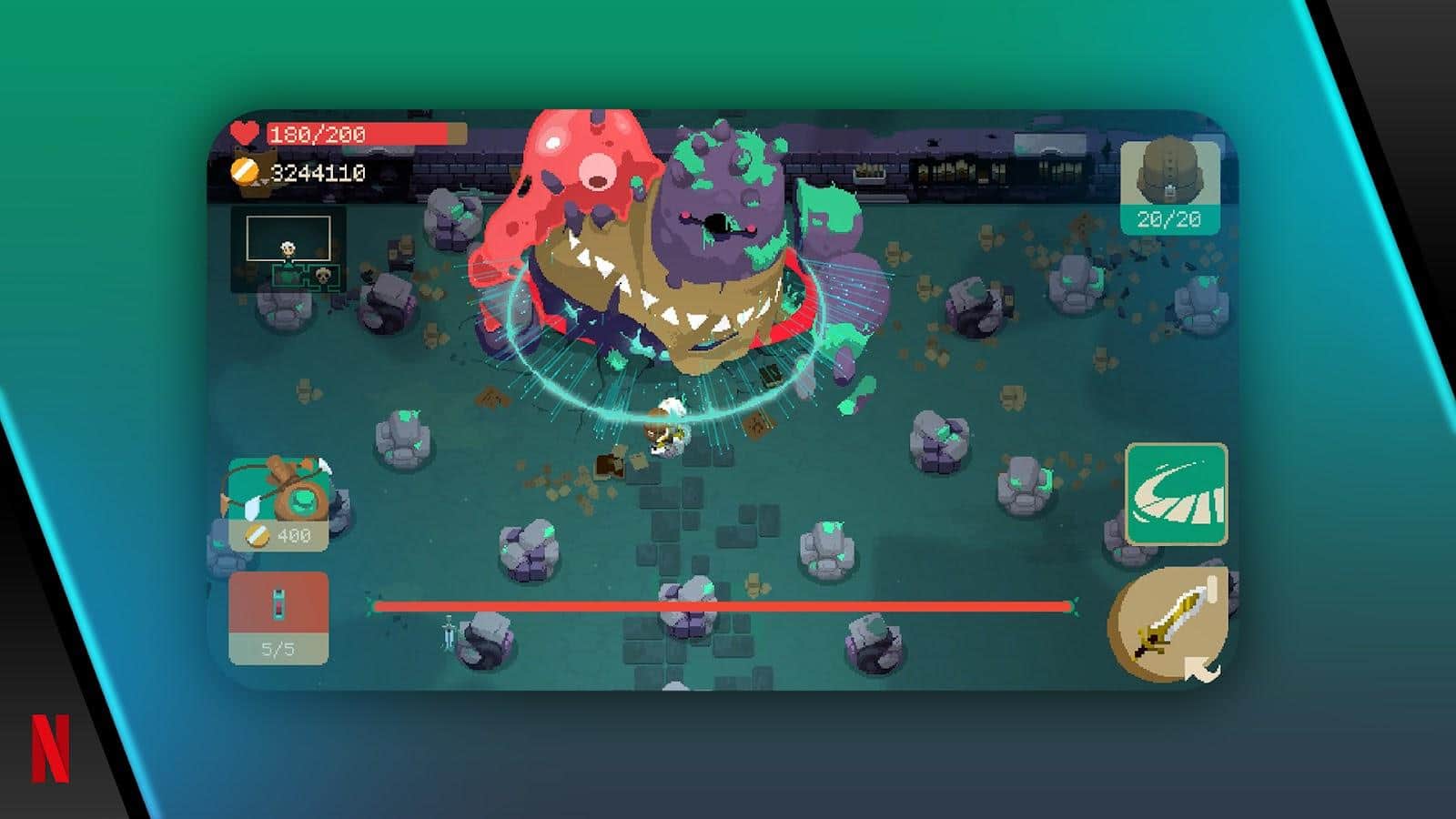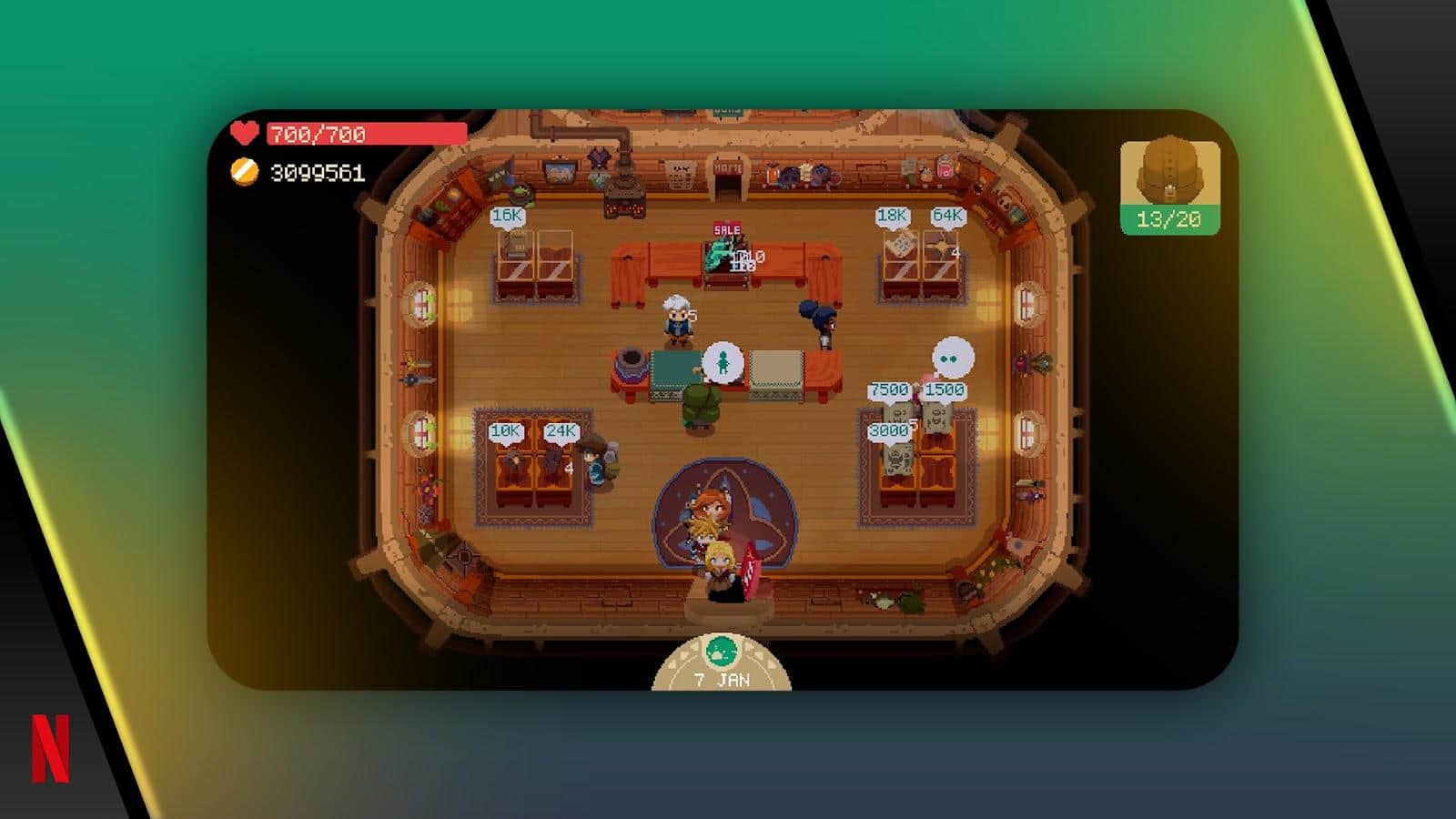 Moonlighter de Netflix es un juego de rol de acción en el que debes asumir el papel de Will, un valiente tendero que sueña en secreto con convertirse en el héroe de esta película de rol de acción. Eres tu propio jefe durante el día. Organiza los productos, establece cuidadosamente los precios, dispone del oro acumulado, contrata asistentes y trabaja en mejorar la tienda. Pero ten cuidado: algunas personalidades oscuras pueden intentar robar tus valiosos bienes. Conoce a tus vecinos y haz todo junto a ellos por la prosperidad de tu pueblo mercado. Ayuda a otros a abrir su propio negocio y observa cómo se desarrolla. Crea nueva munición y armas junto con otros residentes y lanza hechizos sobre las existentes para aumentar tus habilidades. Encuentra tesoros raros para tu tienda, lucha contra enemigos y mejora tus habilidades de combate explorando nuevos territorios por la noche. Cuantos más lugares abras, más acertijos podrás resolver.