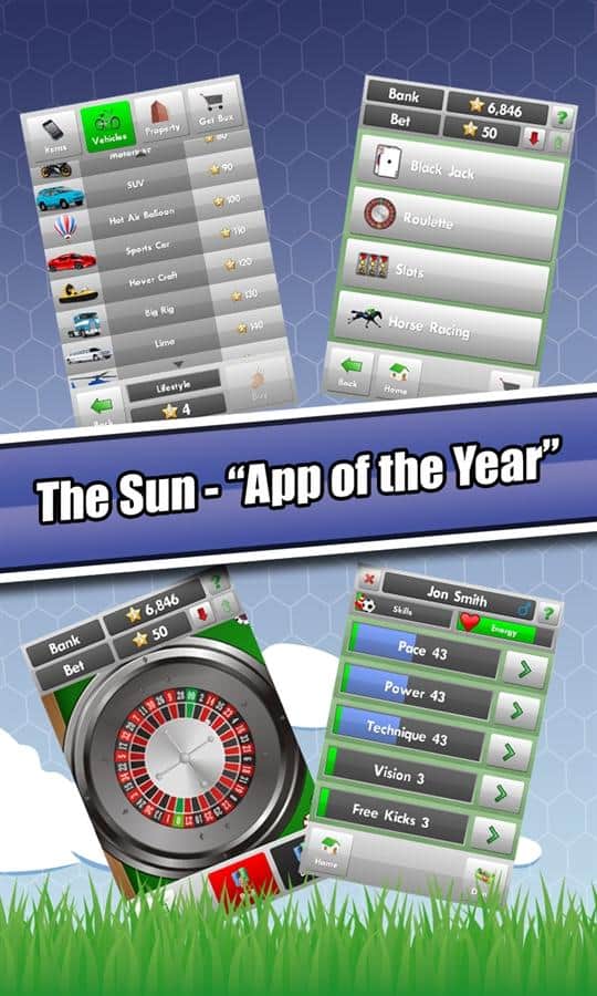 New Star Soccer – un juego de fútbol jugado por numerosos jugadores en todo el mundo. En este juego, tu tarea será reunir a tu equipo de fútbol y hacerlo el más popular y reconocible. Lleva a tu equipo a la victoria, participando en partidos amistosos con otros jugadores, y gana un lugar en la Copa del Mundo. Entrena a tu equipo contratando a los mejores entrenadores y agentes, y abre tu camino a la Liga de Campeones Internacional. Puedes disfrutar de horas interminables de diversión y la oportunidad de volverte famoso. También haz carreras con los mejores caballos y gana dinero que no es poco.