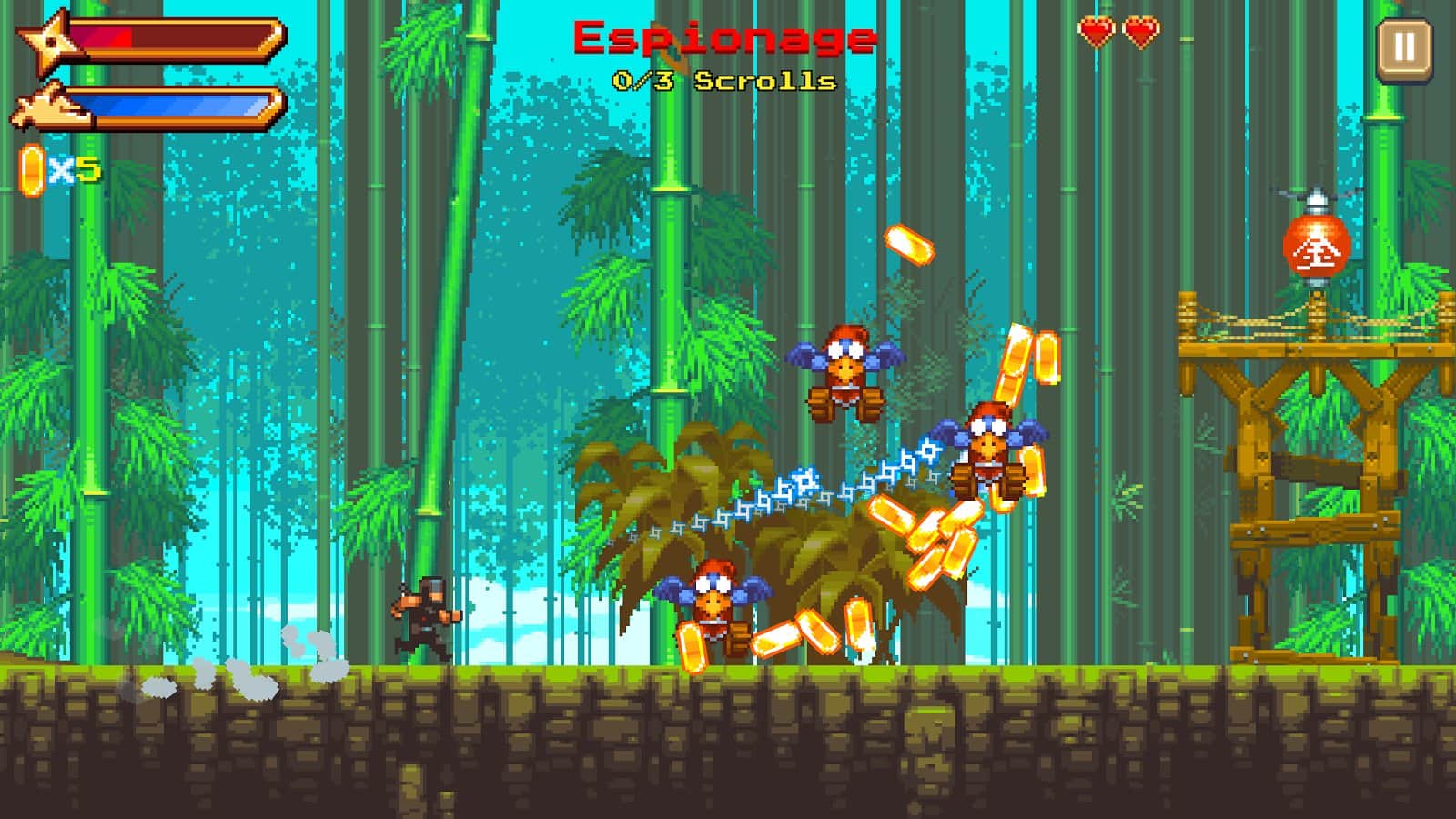 El desarrollador de estudios GameResort es bien conocido por los propietarios de dispositivos móviles con su rico arsenal de arcades lanzados, incluyendo la famosa serie de Stupid Zombies. Y luego los chicos decidieron hacernos su nuevo proyecto, creado en estilo arcade, el juego recibió el nombre de NinjAwesome. No es difícil adivinar por el nombre que el personaje principal del juego es el ninja, la mecánica del juego es simple y clara: saltar, correr, lanzar a tus enemigos diversas estrellas, recoger monedas y desarrollar tus habilidades. Los creadores del juego intentaron diversificar la jugabilidad, teniendo varios modos. Misiones clásicas, un modo infinito y completar las pruebas necesarias para obtener el título de ninja. Y cinco misiones secretas.