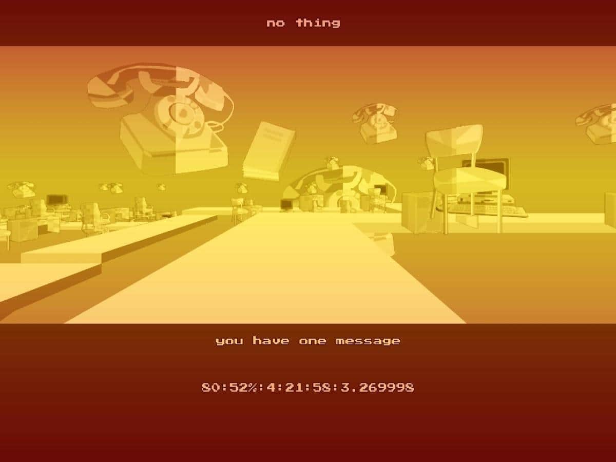 NO THING - Viaje de Arcade Surrealista – aventura de acción para Android donde te encontrarás en un mundo surrealista. En este juego operarás como un trabajador de oficina normal que debe emprender un viaje único hacia la Reina del hielo con un mensaje importante. En el juego te encontrarás en 1994 y en un futuro en rápido crecimiento. El juego tiene una historia intrincada y única. Juega en primera persona y muévete en un espacio 3D con fallos y efectos post. Juega con auriculares para una inmersión completa en el juego y escucha la voz en off. El juego te ofrecerá un estilo retro, controles simples y muchos logros y una tabla de clasificación donde podrás seguir tu progreso.
