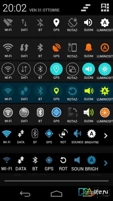 La aplicación permite ampliar significativamente la lista de interruptores rápidos, no solo en el sentido de encender/apagar, sino que también proporciona acceso a la configuración completa, y permite agregar información sobre el clima y notas rápidas en el panel (las entradas preparadas se mostrarán aquí). Si hay un LED, también podrás configurar su funcionamiento. Y, por supuesto, decoraciones, ¿cómo podríamos prescindir de ellas?: en este caso, podrás elegir el tema de diseño, elegir fuentes y colores de la interfaz.