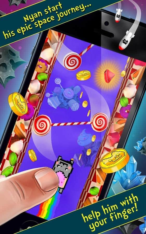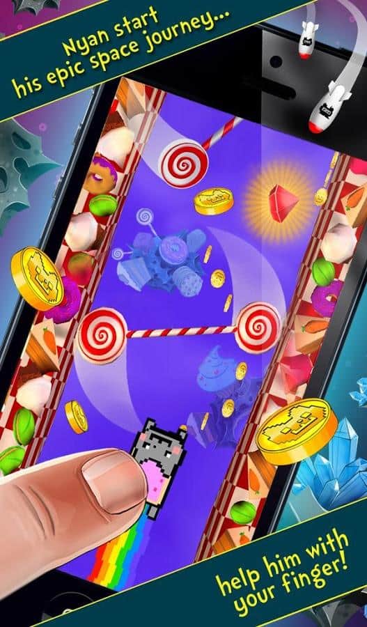 Nyan Cat: El viaje espacial es un corredor perfecto sobre un gato conocido. Estás atrapado en un espacio lleno de caramelos, queso, pasteles y otros platos. El juego tiene una mecánica de carrera elemental con un solo toque, por lo que puedes aprender a jugar sin dificultades.