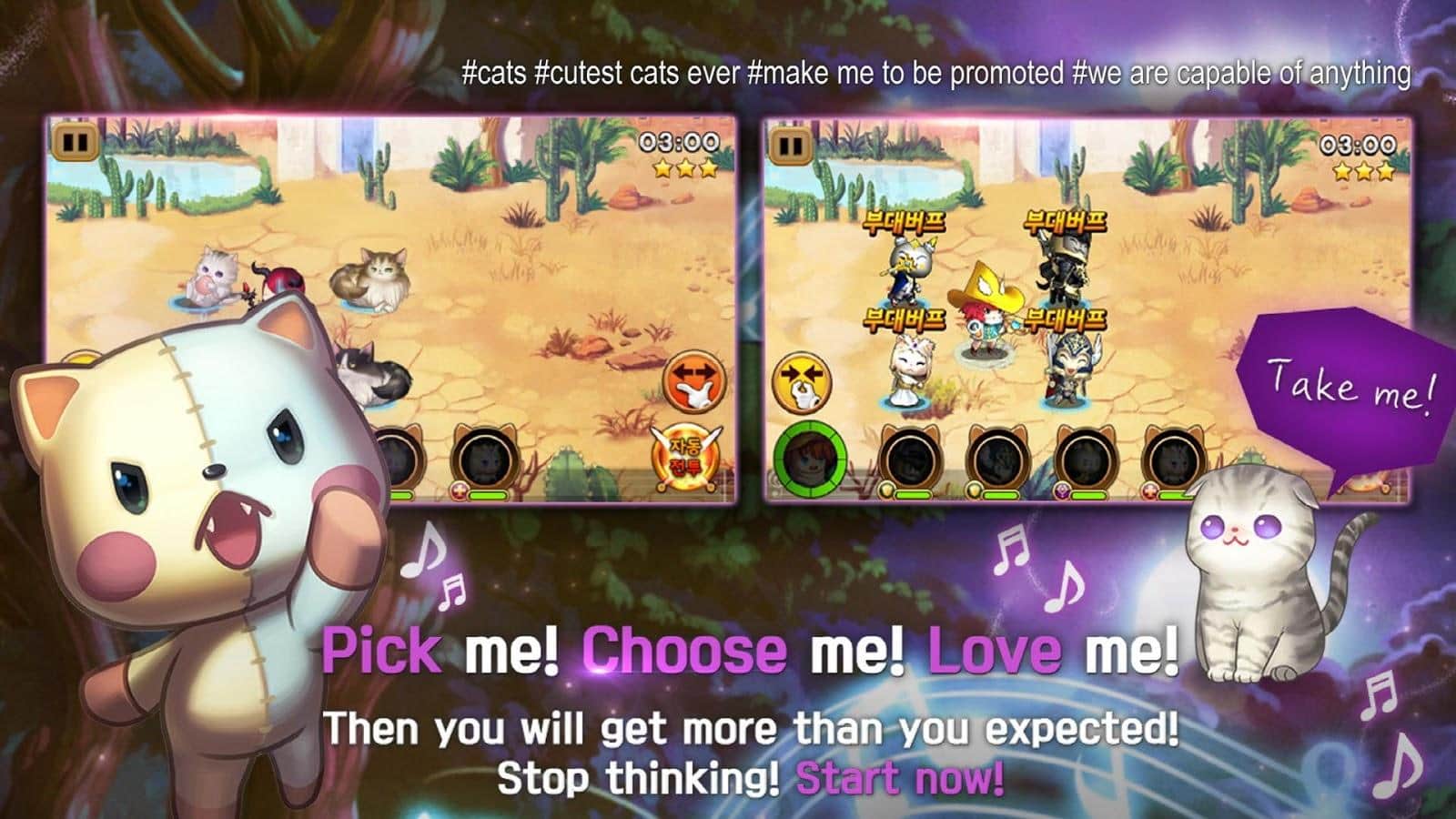 OCATSTRA – un emocionante juego donde gestionarás un divertido gato. En este juego, tu misión principal será reunir tu equipo imbatible de focas y utilizar su poder y habilidades para destruir a todos los enemigos. En este juego explorarás oscuras mazmorras o escalarás la antigua torre, pasando por niveles emocionantes. Desafía a los jugadores más fuertes de todo el mundo y lucha contra ellos en la arena. Después de una batalla exitosa, recoge trofeos y premios que en el futuro podrás gastar en mejorar a tus personajes. El juego presenta más de 100 gatos adorables y variados, y complace a los jugadores con excelentes gráficos y efectos especiales.