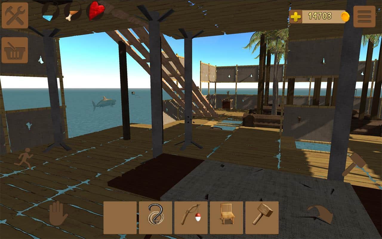 Oceanborn: Supervivencia en Balsa - Al comienzo del juego te encuentras en medio del océano. A tu alrededor solo hay agua salada, una variedad de cosas esparcidas, una balsa y por supuesto tiburones. ¡Tienes que intentar sobrevivir en un entorno hostil, recolectar objetos, pescar, beber agua y por supuesto intentar sobrevivir!