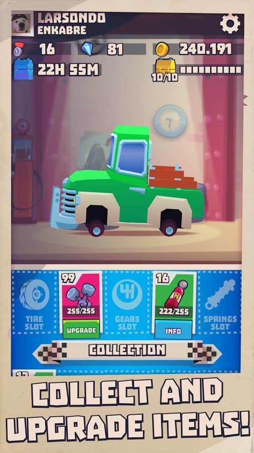 Offroad Match – un emocionante juego para Android, que combina carreras de coches y el juego de tres en fila. En este juego, tu tarea será recoger bloques del mismo color en líneas y hacerlos estallar, ganando así energía para el coche. Muestra toda tu lógica e inteligencia y trata de llegar a la línea de meta primero, adelantando a tus rivales. Haz combinaciones de bloques idénticos y destrúyelos. Gana la carrera y conquista el camino difícil y peligroso. Durante el juego, desbloquea nuevas piezas para tu coche y mejora los coches para obtener mejores resultados y nuevos récords.