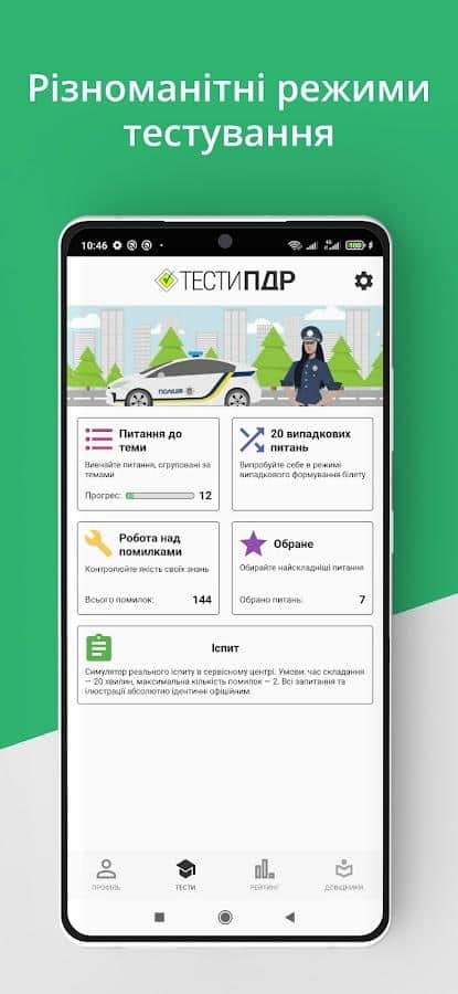 Pruebas Oficiales de las Regulaciones de Tráfico de Ucrania - Elija la categoría necesaria para obtener el carnet de conducir y aprenda todas las posibles preguntas para aprobar con precisión los exámenes o refrescar la información aprendida sobre las regulaciones de tráfico en Ucrania. La aplicación contiene más de 1000 pruebas, diversas preguntas y acertijos con visualización, por lo que definitivamente encontrará lo que no sabe o no recuerda. Elija cómo exactamente se llevará a cabo su formación: por boletos o por temas específicos de su elección. Incluso si de repente respondió incorrectamente, en cualquier caso, tiene la oportunidad de revisar los errores cometidos.