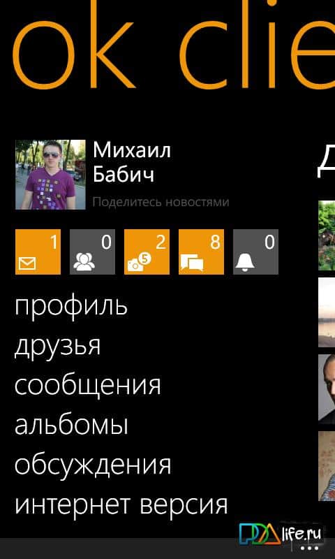 Cliente OK – cliente móvil de la red social Odnoklassniki para Windows Phone, con un rendimiento en el moderno estilo Metro. Soporta todos los métodos de API disponibles del sitio web de odnoklassniki.