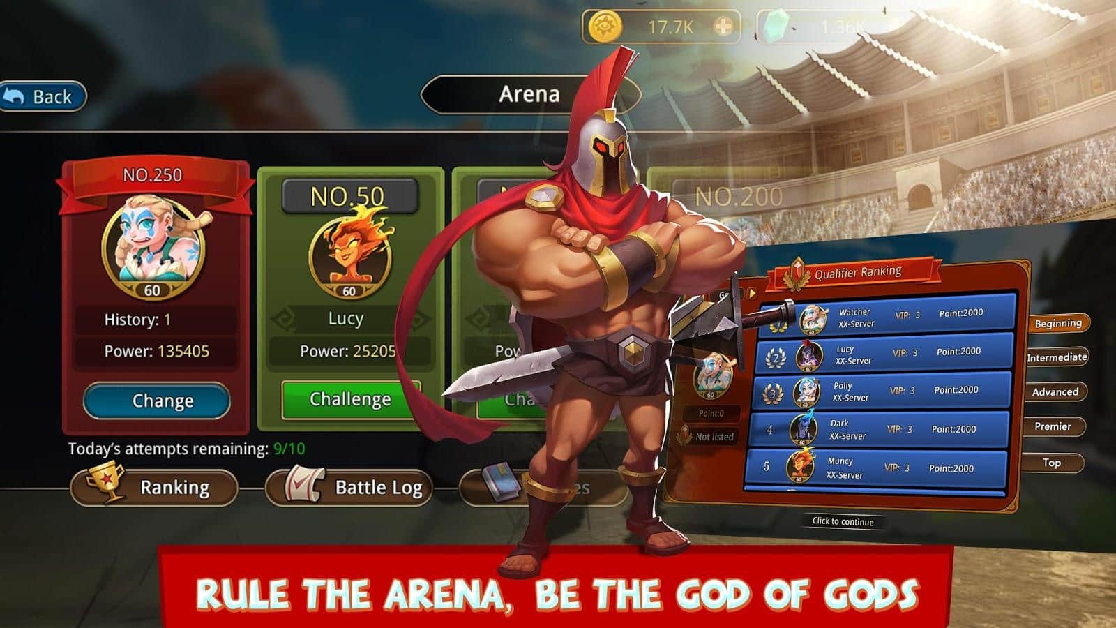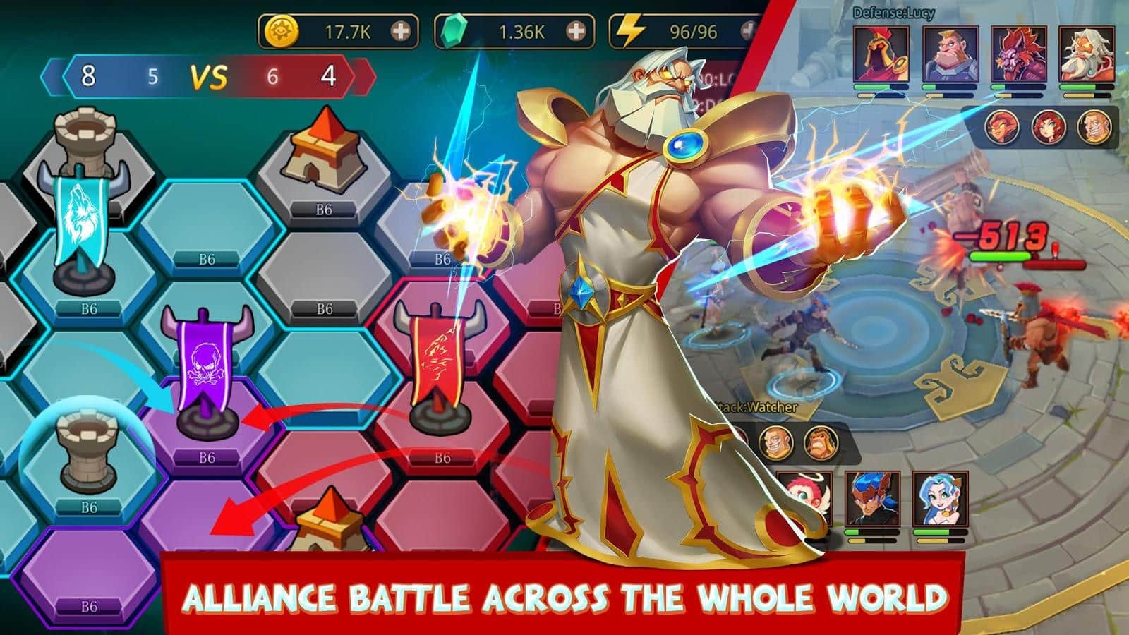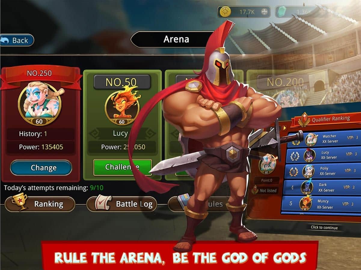 Olímpicos vs. Titanes – un juego en Android donde coleccionas tu colección invencible de héroes y luchas contra los titanes. En este juego controlas a los dioses antiguos, héroes legendarios y criaturas míticas y luchas en diferentes mapas. Desafía a oponentes más fuertes y desarrolla una estrategia de guerra para aplastar a todos los enemigos y salir victorioso. Descubre nuevos héroes y personaliza sus capacidades únicas. Desafía a los jugadores más fuertes de todo el mundo y lucha en muchas arenas, ascendiendo en la tabla de clasificación. El juego cuenta con excelentes gráficos, controles simples y una amplia variedad de personajes.