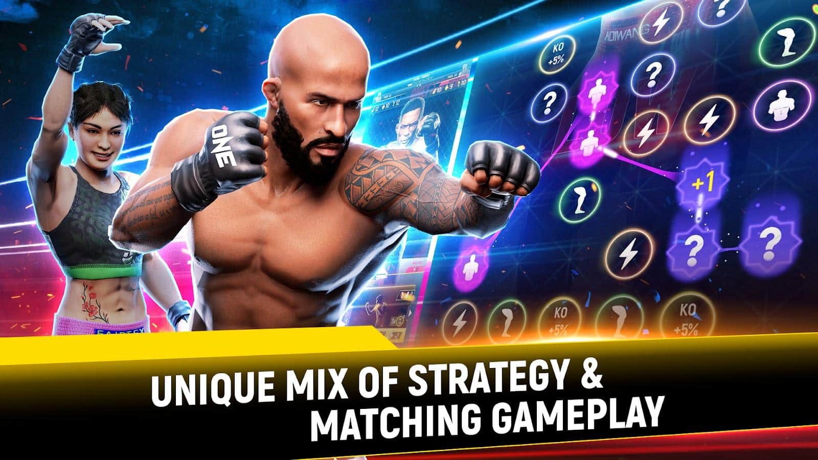 ONE Fight Arena: MMA Tactics - ¡entra en el mundo de las batallas de MMA con este increíble juego! Te convertirás en un nuevo luchador que debe demostrar fuerza y estrategia utilizando tus habilidades de pensamiento rápido. Mejora a tu luchador al máximo y entrega uppercuts, lanzamientos y estrangulaciones. En resumen, todo lo que ves cuando miras MMA. Pero ten cuidado, porque los enemigos también pueden convertirte en carne picada. Así que sé astuto y cauteloso. Al ganar, puedes demostrar que realmente eres digno de estar en el mundo de MMA!