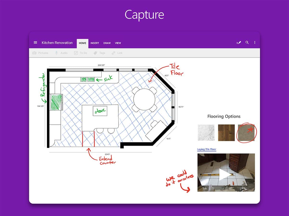 - Widgets de pantalla de inicio que permiten crear rápidamente notas de foto, audio y otras