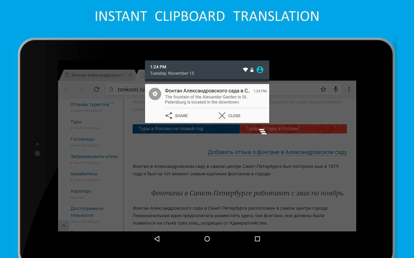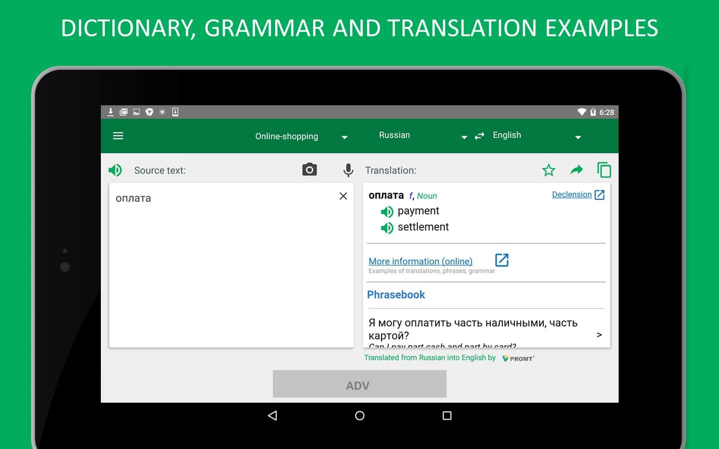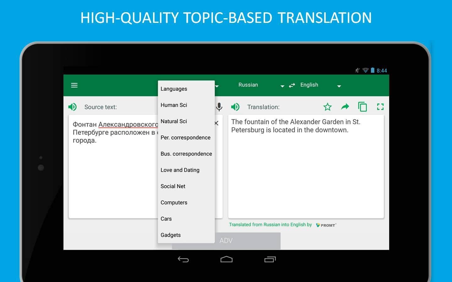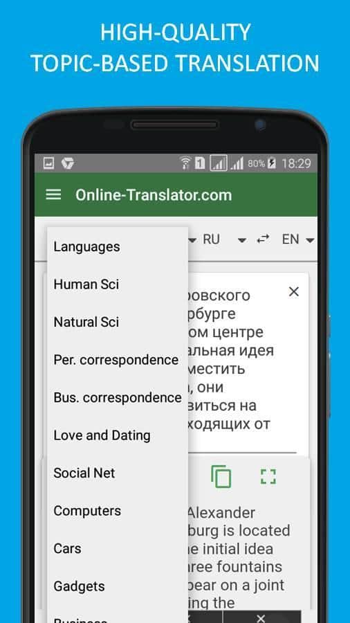 Traductor Translate.Ru - una aplicación útil para estudiar, trabajar o simplemente para personas que aman viajar, pero no conocen el idioma. Con esta aplicación siempre sabrás lo que dices en el extranjero o algo que te digan que entiendas. ¡Y el diseño moderno de la aplicación, diseñado específicamente para tabletas y teléfonos inteligentes, hará que el viaje, el trabajo y el estudio sean más fáciles y agradables!