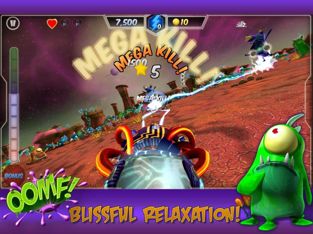¡OOMF! - un juego de arcade dinámico y jugoso, una especie de galería de tiro de dibujos animados. Caos a tu alrededor y lo tienes en mano, ¡organiza un verdadero desorden y disfruta de la jugabilidad de un shooter en primera persona! Encontrarás no solo muchas emociones positivas, sino también un montón de mejoras y habilidades, así como la oportunidad de competir con amigos en Game Center. ¡Permítete relajarte y disfrutar a toda velocidad!