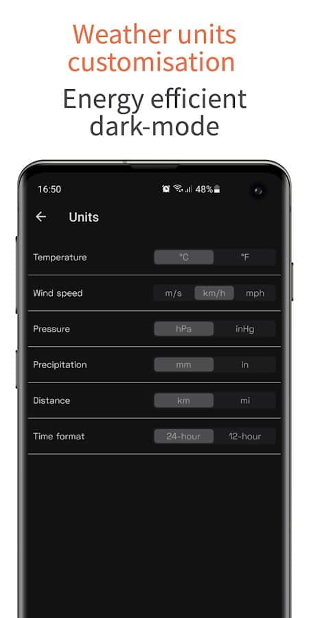- Visualización de cobertura de nubes, dirección y fuerza del viento;