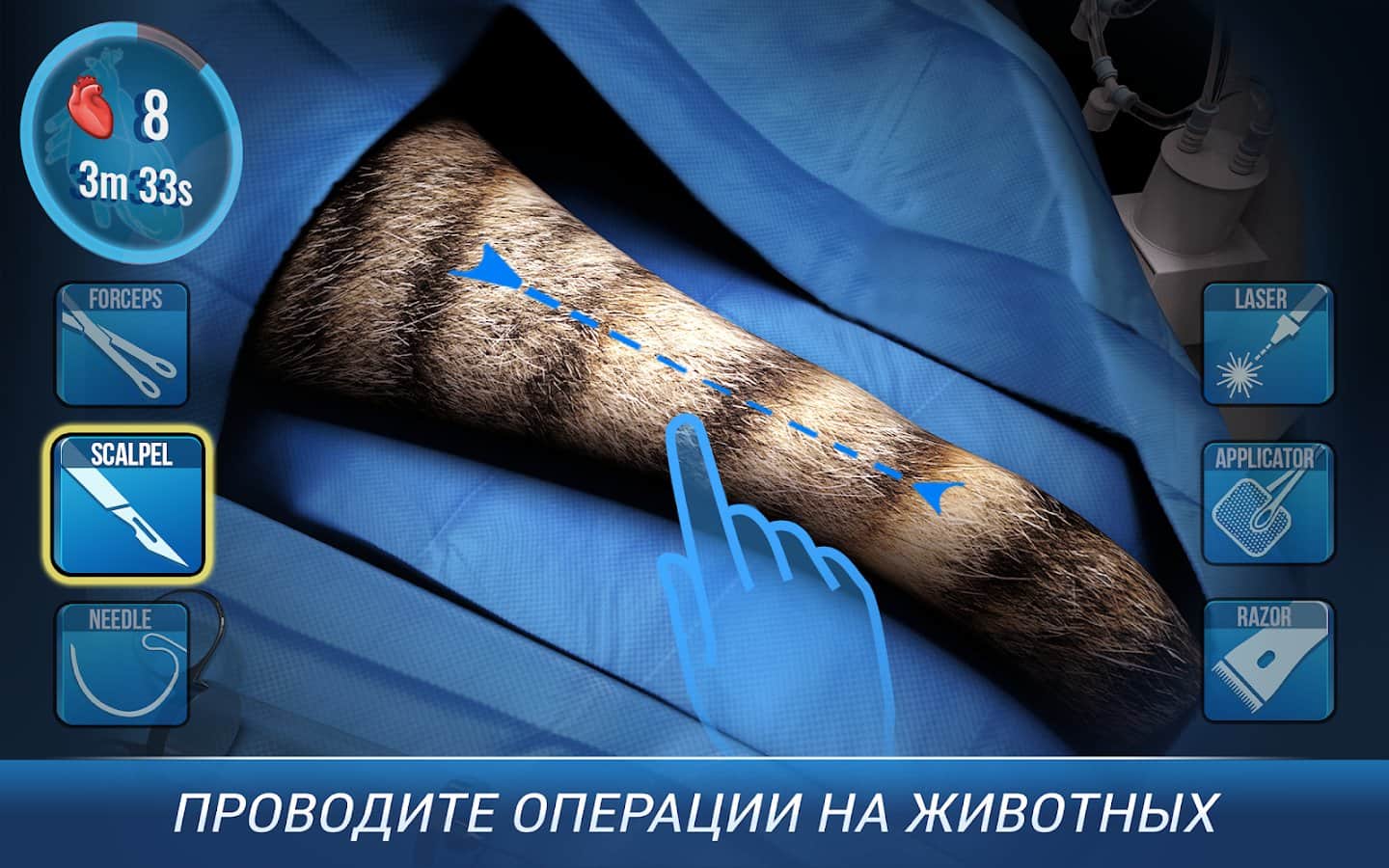 Opera Ahora: Hospital de Animales – descubre una simulación realista de un hospital para animales y realiza numerosas misiones. En este juego conocerás a muchos miembros del personal del hospital, cada uno con su propia historia. Realiza numerosos y complejos juegos de misión para rescatar animales salvajes y domésticos. Realiza operaciones realistas en diferentes partes de los animales y desbloquea salas como la sala de operaciones, la sala de MRI, salones para mascotas, garaje para ambulancias y otros. Completa más de 200 misiones del juego y sigue las aventuras de Eden, Ash, Baby y otros personajes.