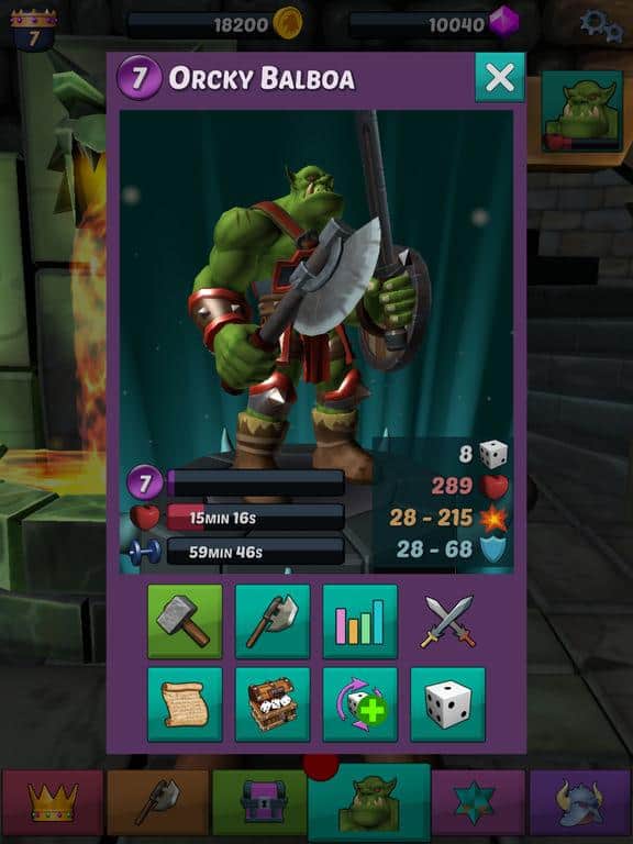 Orc Dungeon – juego de estrategia por turnos para iOS donde explorarás el mundo subterráneo. En este juego, jugarás el papel de los orcos temerarios Balboa que se embarcaron en un fascinante viaje a través de la mazmorras, llenas de monstruos, numerosas armas y torneos. Mejora y mejora tu personaje durante el juego y logra excelentes resultados. Reúne a tu equipo invencible de orcos y desafía al otro equipo luchando en torneos PvP.