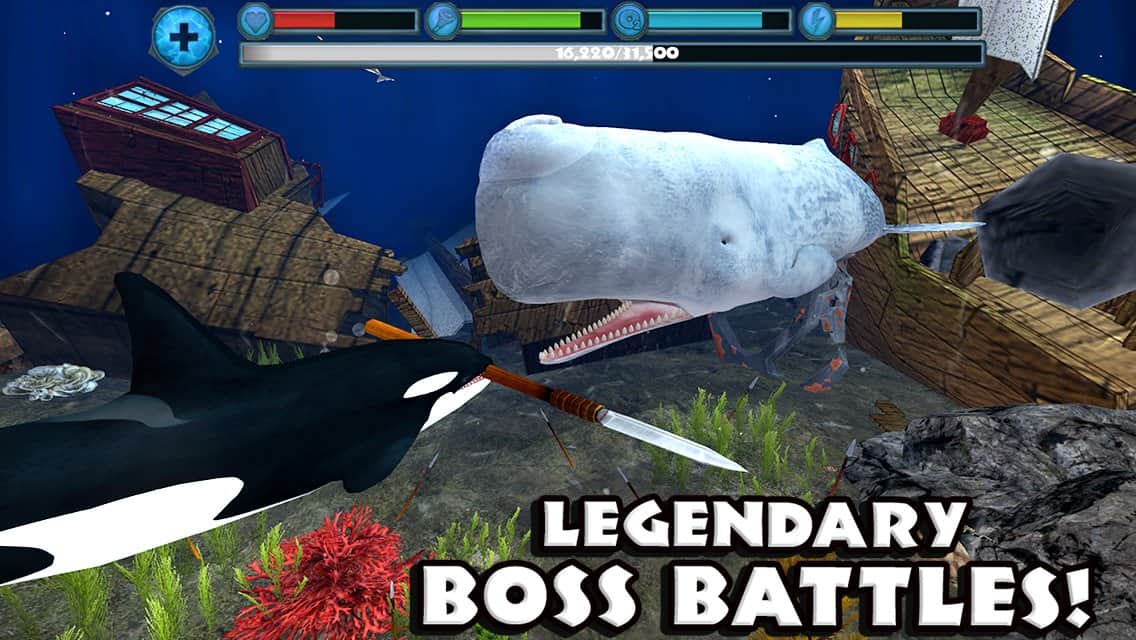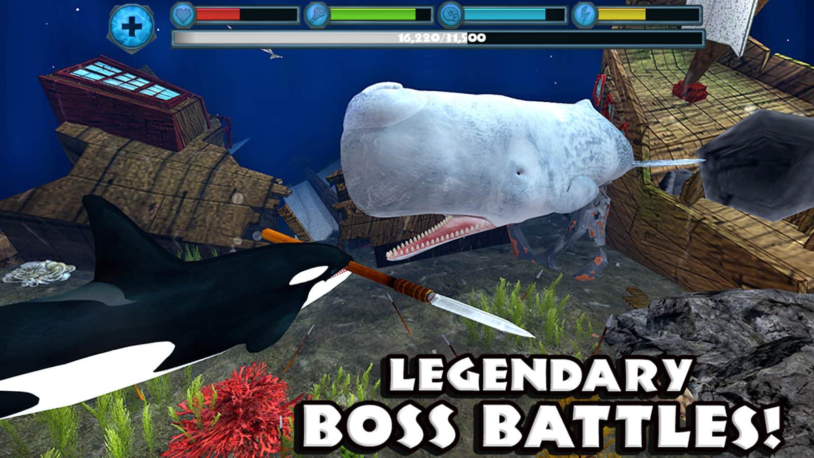 Vive al menos un día en la vida de casi los mayores asesinos animales del mundo junto con el simulador de orcas. La ballena es un animal especial, que tiene miedo de todos los animales en el océano Ártico. Sumérgete en gran profundidad, tratando de sobrevivir. Aunque eres un gigante, hay más de ti: ballenas azules, Kraken, manada de tiburones y otros depredadores. Tendrás energía limitada para almacenar que solo puede alimentarse de peces pequeños. Aprenderás a cazar, podrás formar una familia, explorar el mundo acuático y sus características. Además, el juego cuenta con logros, bonificaciones y una enciclopedia de animales.