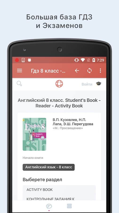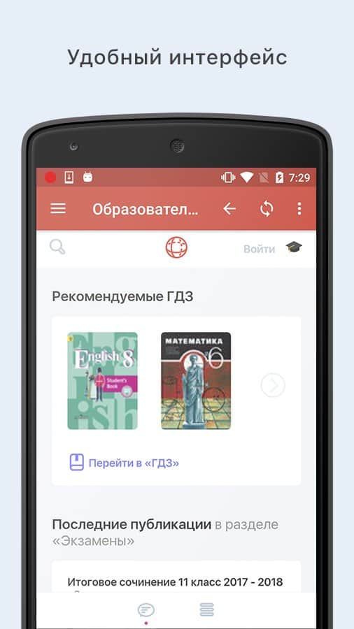Cualquier estudiante ahora no se sorprenderá por la aplicación y las respuestas a las preguntas del examen. Tales programas son muy populares y tienen una alta demanda entre los adolescentes. Desafortunadamente, muchos de ellos tienen errores tipográficos y errores. La excepción es la aplicación Otvet. Uno es un proyecto educativo que está diseñado para trivialidades. GDZ y respuestas para exámenes aquí están compuestos por profesores competentes que tienen una amplia experiencia en el campo de la educación. Ahora puedes confiar en tales "chuletas" y estar seguro de la respuesta correcta. Especialmente encontrar el libro de texto escolar adecuado con la tarea no es difícil con la ayuda de un conveniente material de búsqueda. El programa se actualiza con frecuencia, no hay anuncios molestos que interfieran con el proceso de aprendizaje.