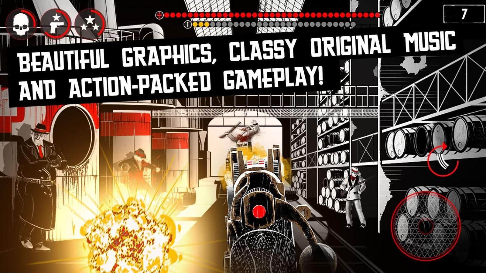 Overkill Mafia - disparos en Android, hecho en el estilo de un cómic en blanco y negro donde juegas el papel de la mafia. En las oscuras calles de Chicago apareció un nuevo gánster, que marca el lugar del padrino y tú. Haz tu mejor esfuerzo para ganar este derecho, despojar a clanes más poderosos y enfrentarlos en un tiroteo, matarlos y convertirte en el más importante de esta ciudad.