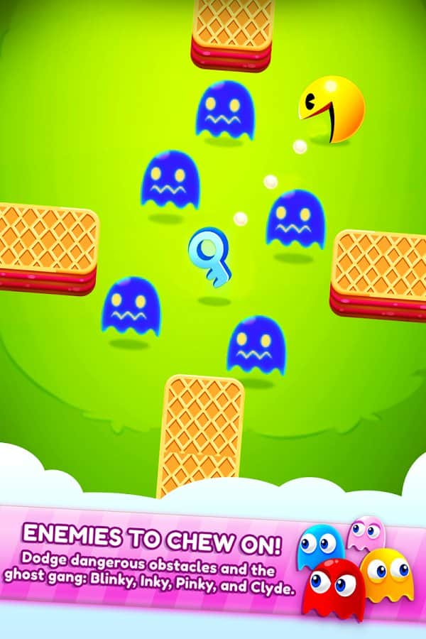 PAC-MAN Bounce es un juego de rompecabezas en el que controlarás a PAC-MAN y lo guiarás a través de varios niveles deliciosos. En este juego, serás tú quien controle al protagonista, dibujando su camino con el dedo y haciéndolo de tal manera que recojas todas las frutas y consigas la llave para el siguiente nivel. Controla a PAC-MAN y come a todos tus enemigos, además de rebotar en las paredes del laberinto y recoger estrellas difíciles de alcanzar. Usa toda tu lógica y trata de completar los 100 niveles con diferentes obstáculos y tareas. El juego te sorprenderá con su colorida gráfica y diversos mundos.