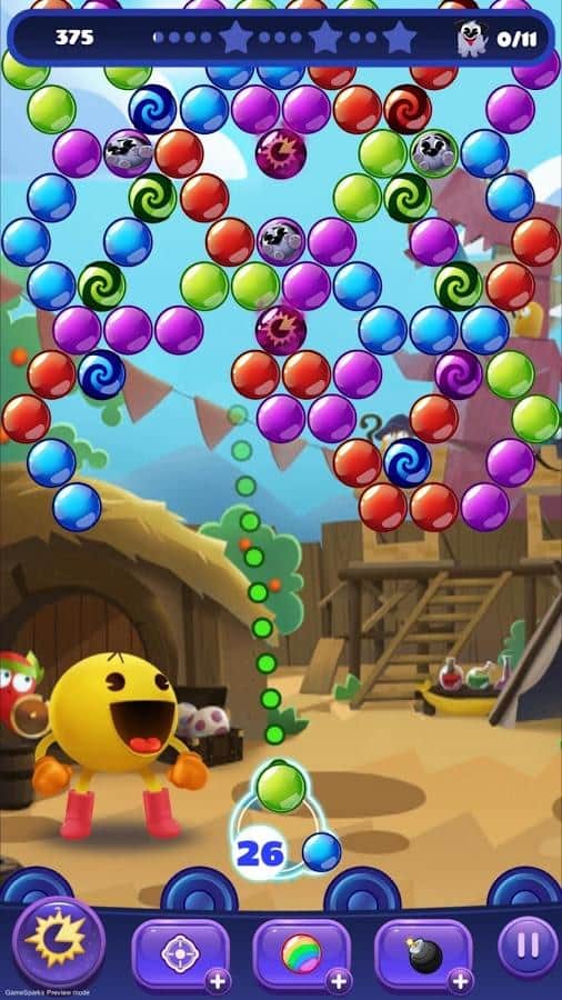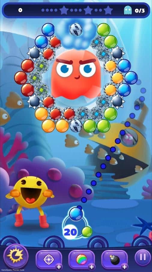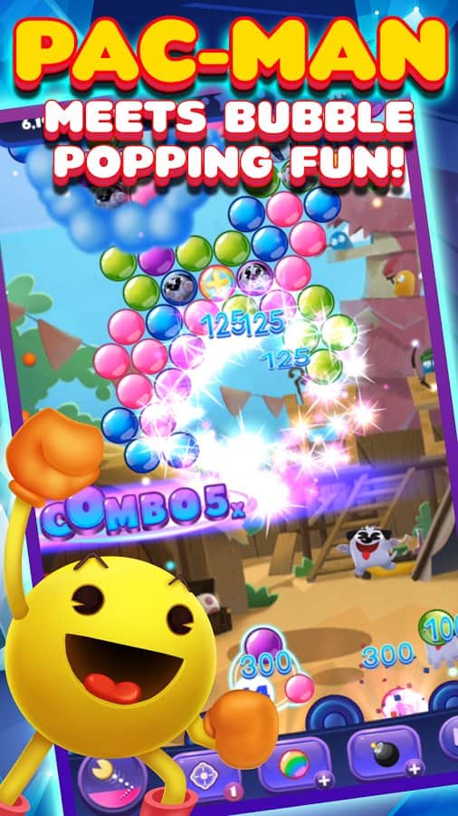 Bubble Shots - una tendencia bastante popular en los juegos, y la jugabilidad combina elementos de rompecabezas y juegos de arcade. Tu tarea es controlar el elemento de acción, a saber, disparar bolas de colores en el campo de juego de tal manera que la combinación de elementos del mismo color, el resto de la jugabilidad se asemeja en gran medida al popular juego de arcade del género tres en raya. A su vez, los desarrolladores del juego llamado PAC-MAN POP! decidieron combinar en un solo juego popular mecánicas y un universo de juego igualmente popular de PAC-MAN. Así, la compañía BANDAI NAMCO brindó a los fanáticos de PAC-MAN un perfecto pasatiempo que puede cautivar a cualquier jugador ocupado durante horas.