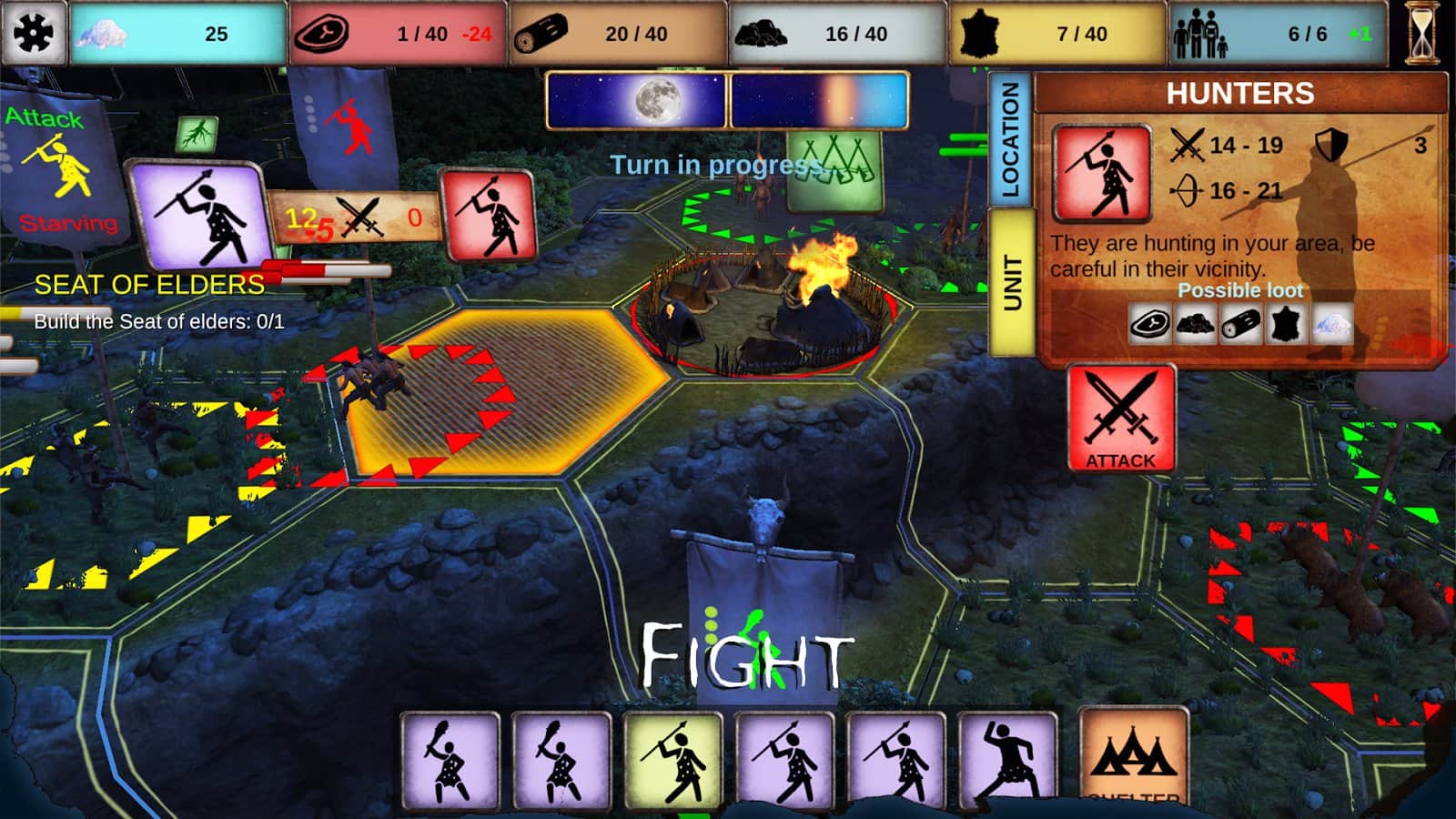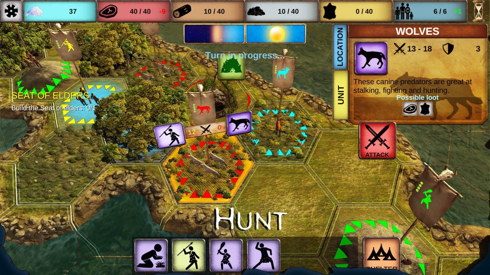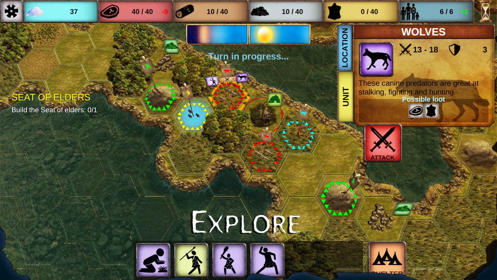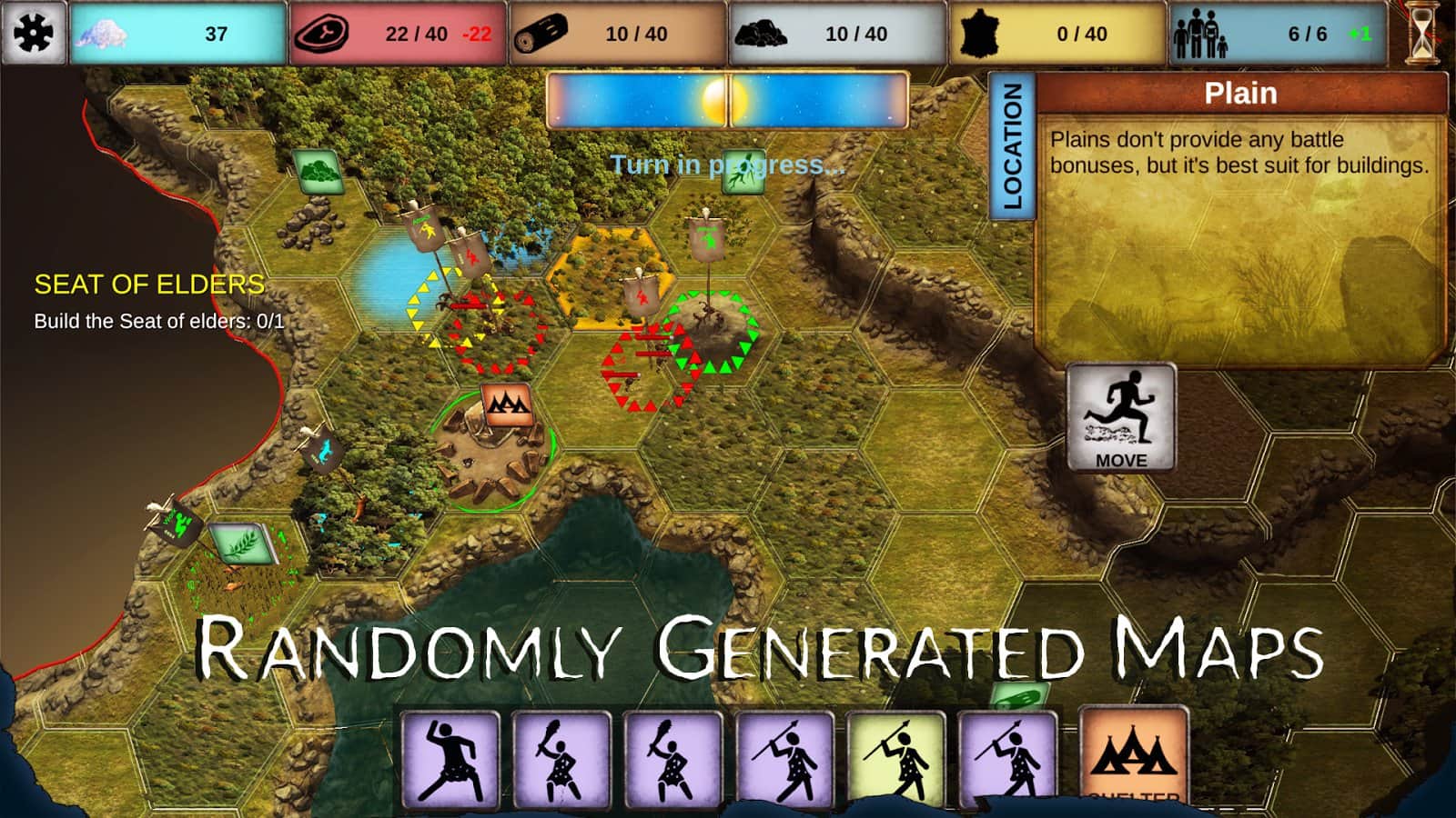 PaleoGrims - juego de estrategia global por turnos en el que te convertirás en el líder de una tribu antigua y tratarás no solo de sobrevivir en un mundo hostil, sino también de asumir el liderazgo entre las otras tribus. Debes recordar que tendrás que controlar todos los aspectos de la vida de la tribu, desde la búsqueda de comida y refugio, hasta la investigación del mundo; la recolección de recursos jugará un papel importante en la supervivencia. Solo una combinación de tácticas, un uso racional de los recursos y la toma de decisiones correctas te permitirá tener éxito.