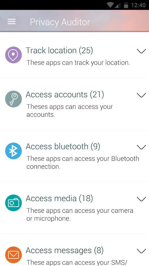 - Auditor de privacidad: escanea y muestra los derechos de acceso de las aplicaciones instaladas.