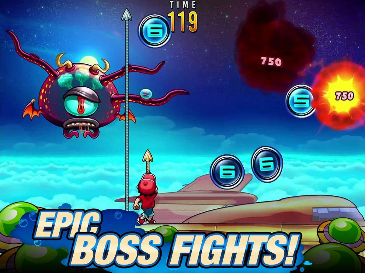 Pang Adventures – popular en los años 90, el juego ahora está disponible para la plataforma IOS. En este juego tomarás el control de dos hermanos, cuya tarea principal será detener la invasión de alienígenas en nuestro planeta. El juego apareció primero en computadoras y luego en plataformas móviles. En el juego, tu tarea principal es destruir los globos con los que los alienígenas están atacando el planeta. En el juego encontrarás muchos modos de juego diferentes, diferentes armas y enemigos. Usa todas tus habilidades y capacidades para destruir al enemigo. Previene la invasión alienígena.