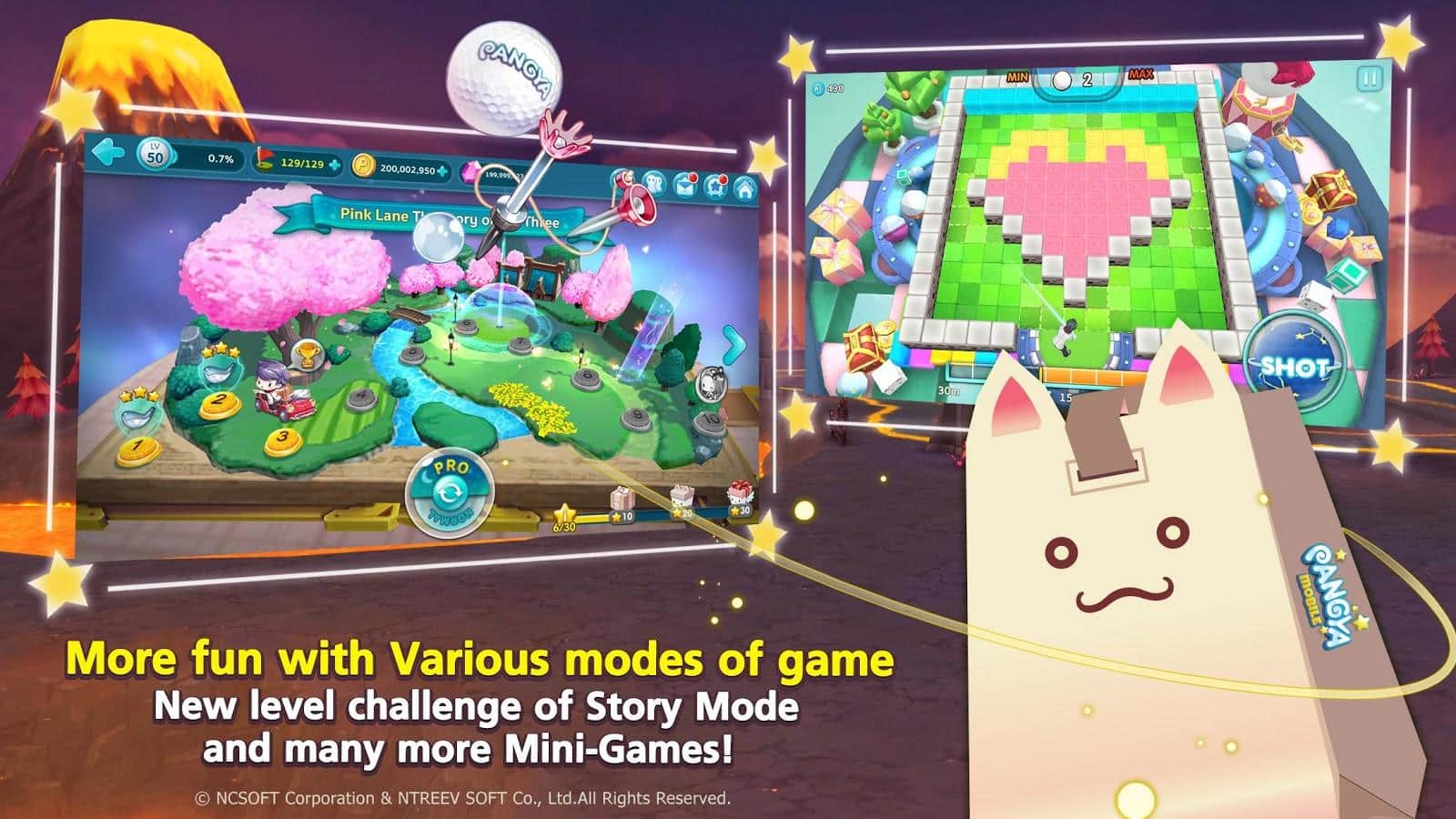 PANGYA Mobile es un juego de deportes, donde juegas al golf. En este juego te encontrarás en la isla mágica de Pangya, que estaba cubierta por una maldición y ahora tu tarea será limpiar el mundo del mal. Elige un personaje de los muchos disponibles en el juego, seleccionando los trajes, palos y equipo. Elige tu estilo y conviértete en un maestro del juego de golf. Desafía a tus competidores en el modo PVP y compite con ellos por los mejores resultados. Completa entretenidos mini-juegos y gana recompensas.