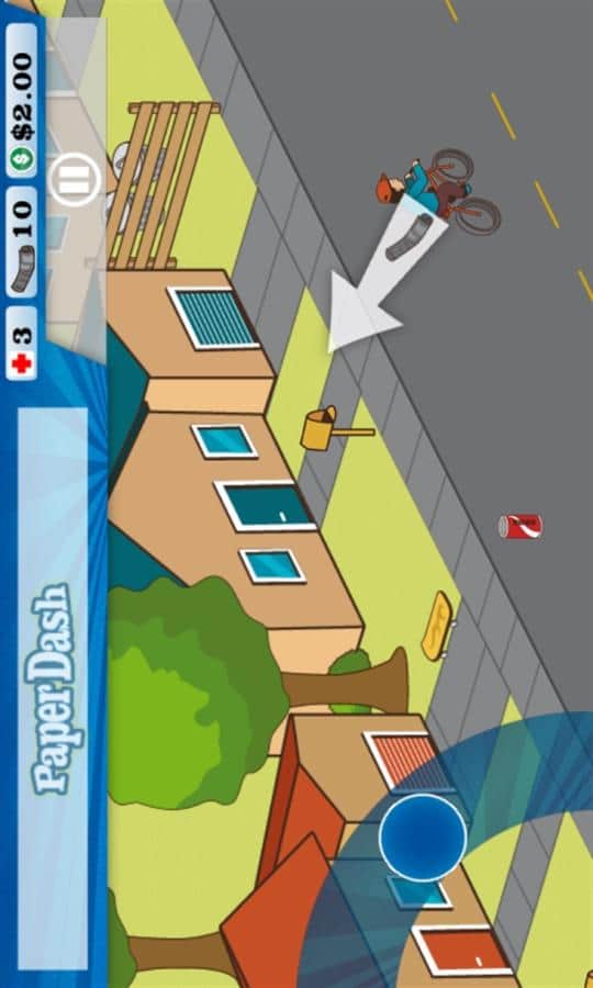 Carrera de periódicos - este inusual juego de arcade para Windows Phone, jugarás como un simple estudiante, que decidió ganar algo de dinero y entregar periódicos a las direcciones. O más bien, llevarlos en bicicleta, y para no perder tiempo en vano, el ingenioso chico simplemente lanza el periódico en el buzón. Tendrás que lidiar con, así que solo cuenta un golpe directamente en el buzón, pero si aciertas en la ventana, rompiéndola, no ganarás el premio, ¡y recibirás una multa real! Pero eso no es todo - en el camino hay obstáculos - pelotas, botes de basura, gatos, personas, etc. Pero hay bonificaciones en forma de refrescos (ingresos adicionales), casco (da vida), carrito especial (la capacidad de transportar más periódicos), aerosol (asusta a los perros) y así. La única desventaja de este juego son los controles, que necesitan ajustes, pero como dicen, ¡nada es imposible!