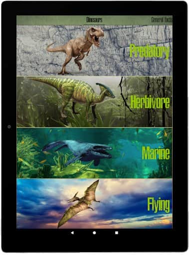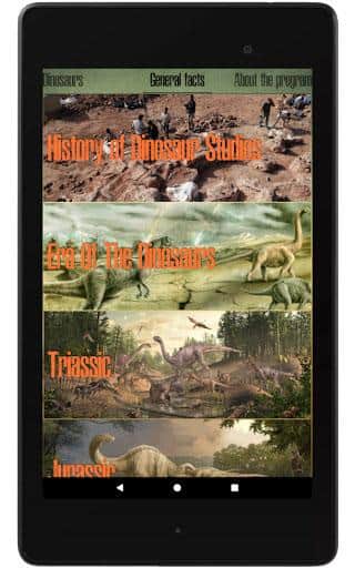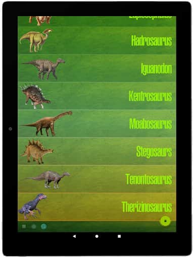 Parque: Dinosaurios - No sabemos qué tipo de criaturas vivieron antes que nosotros cuando todo estaba empezando a existir. Los científicos aceptan la teoría de que eran dinosaurios, ya que hay muchas excavaciones inesperadas con enormes huesos de los cuales se suponía que eran especies de dinosaurios. Conoce mejor estas especies leyendo información adicional sobre ellas. Descubre cuáles de ellas podían volar, vivir bajo el agua, comer plantas o carne. Aprenderás en detalle: dónde vivía cada especie, qué estilo de vida llevaban, qué comían, cuántos períodos vivieron, por qué desaparecieron y qué datos interesantes aún puedes leer sobre ellas.