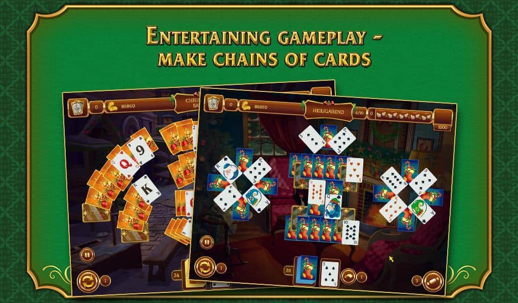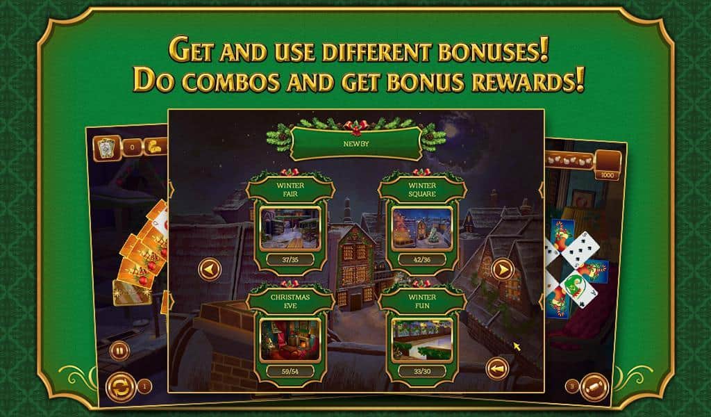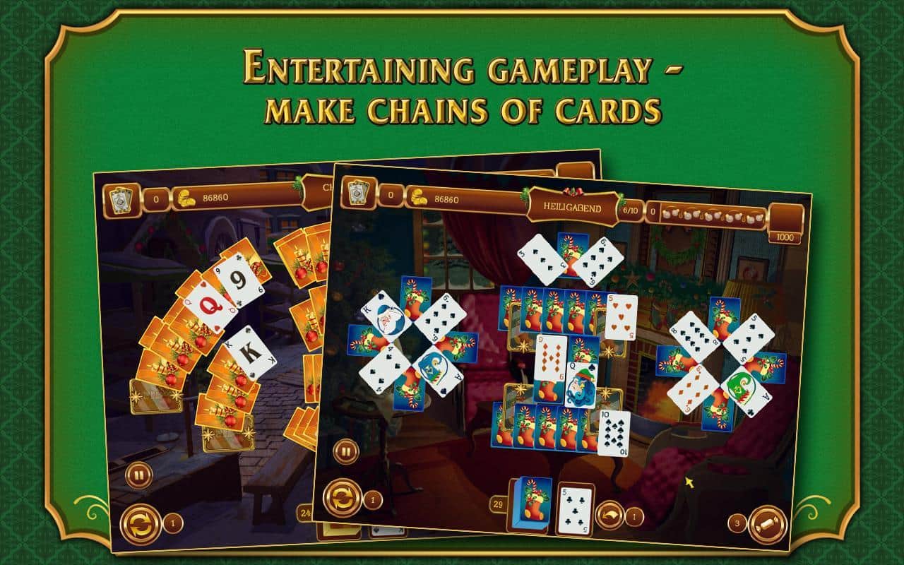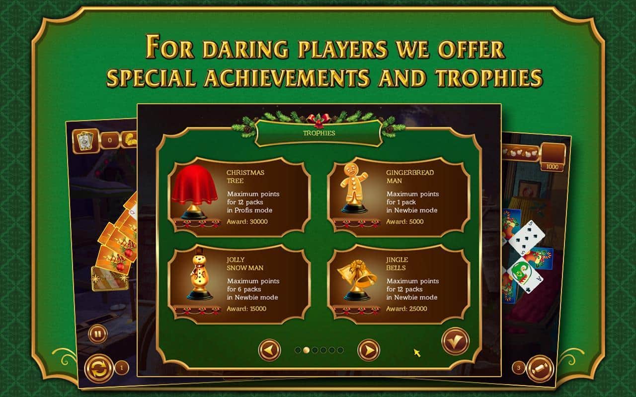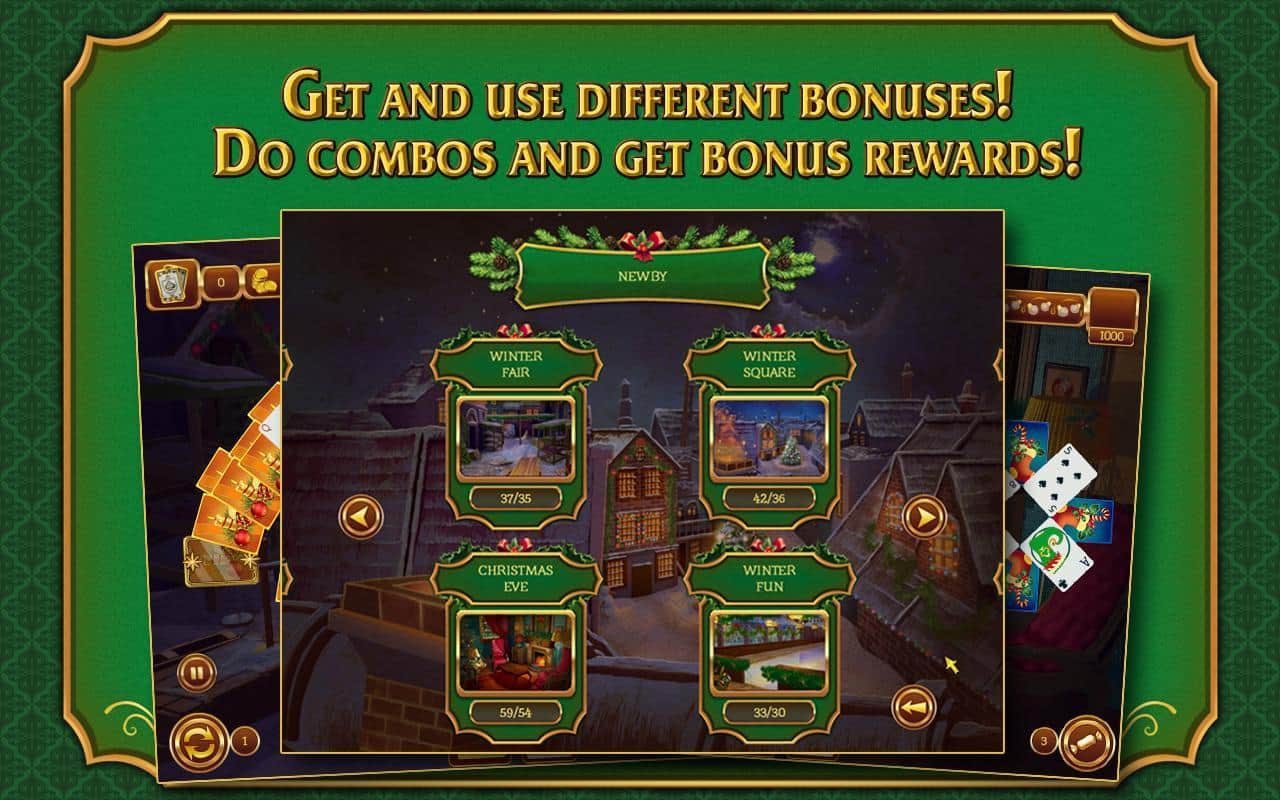 Ahora y diciembre. En el centro de la Navidad y las vacaciones de Año Nuevo, probablemente es difícil encontrar un área de la actividad humana que haya despreciado un evento tan Grandioso. Y la industria del entretenimiento, así como los desarrolladores de juegos para la plataforma Android, prestan especial atención a la celebración que se aproxima, y Solitaire. Navidad es un buen amigo para todos y un solitario tan querido, en el que probablemente cada uno ha pasado no una hora libre, y a veces tiempo de trabajo, decorando para Navidad. Además de los fondos altamente detallados en la ambientación de las festividades navideñas y el correspondiente audio, los desarrolladores de Solitaire. Navidad para Android han visto el familiar juego desde unos pocos nuevos puntos de vista. Y así, encontrarás una larga duración de juego de más de 15 horas, más de 120 niveles, 12 ubicaciones festivas, diferentes niveles de dificultad, niveles bonus y asignaciones especiales. Lo que sin duda no hay duda es que un juego de solitario tan colorido será una excelente manera de pasar el largo fin de semana festivo.