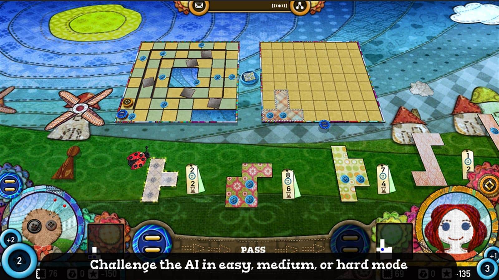 Patchwork: El Juego – un juego de mesa para Windows Phone donde tienes que coser una colcha a partir de piezas. Este juego está diseñado para dos jugadores con la posibilidad de jugar contra jugadores reales o contra la IA. En el campo habrá dos mantas, tu tarea principal será llenar tu colcha con diferentes piezas similares a Tetris, más rápido que tu oponente. Recoge su manta para que no quede ni un solo espacio vacío. Juega contra un jugador virtual o desafía a los jugadores más fuertes que suben más alto en la tabla de clasificación. Lucha por la victoria usando varios retazos.