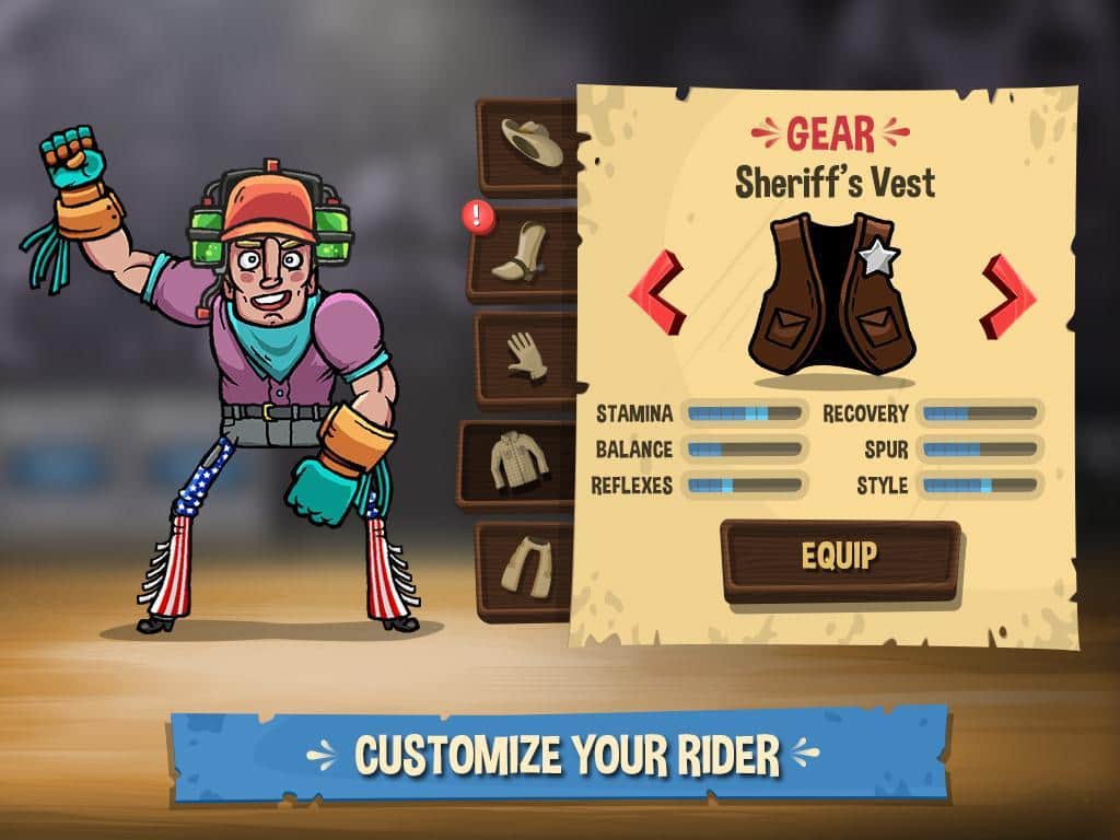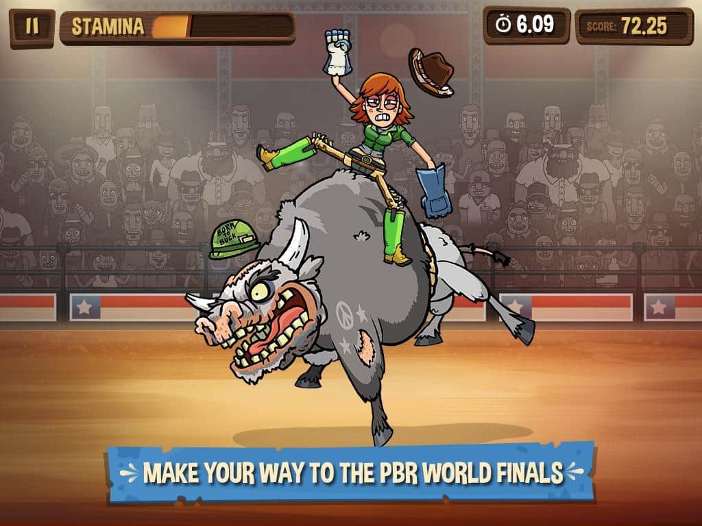 PBR: Simulador de toros Raging Bulls en Android, donde tienes que quedarte en él el mayor tiempo posible. Elige tu personaje y siéntate en el toro, pero agárrate fuerte, te esperan 8 segundos de diversión y enormes saltos, mientras el toro intentará despegarte de su espalda. Juega y gana puntos, que puedes utilizar para ir a Las Vegas para las finales de PBR. Comienza tu carrera ahora mismo y llega a las finales recibiendo muchos premios.