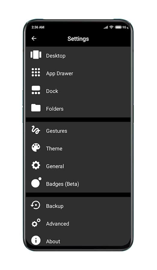 la posibilidad de cambiar el número de íconos y aplicaciones, fondo y tema